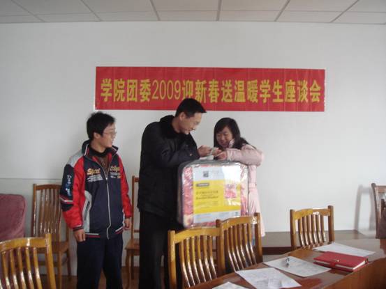 最后,团委书记 张涛向 20 名 家庭经济困难同学发放了慰问品,让同学们感受到学院大家庭的温暖。 ( 团委 )