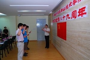 会上举行了教职员工新党员的宣誓仪式,宣誓仪式后党员代表机电工程系党支部何永艳作了题为“坚定信念,顽强拚搏、心怀学生,用手、用脑、用心做好每一件事”的发言;电子工程系党支部杨莹、入党积极分子徐御,介绍了全国技能大赛参赛心得;通信与信息工程系党支部姜涛与同志们分享了服务世博、贡献世博,努力为学生搭建成长的平台快乐;行政管理党支部陈红旗以“平凡的工作岗位上体现党的先进性、模范性,最关键的是责任”为题介绍了她和她的团队;学生党员代表计算机系孟颖皓同学在发言中谈了自己在党组织帮助下成长的历程,并决心努力学习,踏实工作,服务同学,处处起到模范带头作用。