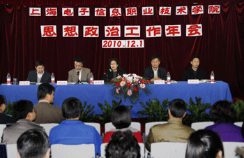 12月1日下午,我院召开2010年思想政治工作年会。学院党委书记、院长杨秀英发表重要讲话、党委副书记、副院长顾剑锋主持会议、副院长徐松鹤宣布表彰决定,院领导严晓华、周俊瑜及各党支书记、全体辅导员近两百人参加了会议。