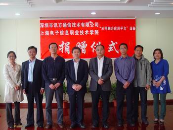 5月6日,深圳市讯方通信技术有限公司向学院捐赠“三网融合应用平台”设备仪式在我院奉贤校区举行。深圳讯方通信技术有限公司副总经理张涛、学院副院长严晓华等出席仪式。