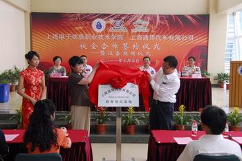 7月5日下午,我院与上海通用汽车有限公司校企合作签约暨设备捐赠仪式在奉贤校区举行。上海市教委高教处处长田蔚风、高教处副处长许涛、高教处副处级调研员徐国良、上海市教育评估院副院长李耀刚、高教评估所所长胡莹和正在学院进行人才培养工作评估的专家巫向前教授、董大奎教授、胡寿根教授、许宝元教授、卓丽环教授、陈锡宝教授、杨林根教授、范露露(秘书)、徐一新(观察员),以及上海通用汽车有限公司副总经理王永清、人力资源执行总监徐珍、上海仪电控股(集团)公司人力资源部副总经理陈晓峰出席了签约仪式,参加签约仪式的还有学院党政领导和师生代表一百余人。签约仪式上还进行了通用汽车教育培训基地的揭牌及通用别克轿车、发动机的捐赠。