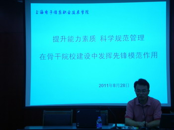 8月28日,学院在徐汇校区举办了党支部书记培训学习班。培训班学习了胡锦涛总书记在庆祝中国共产党建党90周年大会上的重要讲话;学习了《中国共产党普通高等学校基层组织工作条例》;学习了学院即将出台的《关于系、二级学院党政联席会议的制度》(试行),还结合具体案例,进行了党务知识研讨互动交流。学院党委书记杨秀英、党委副书记顾剑锋分别做了主题讲座。