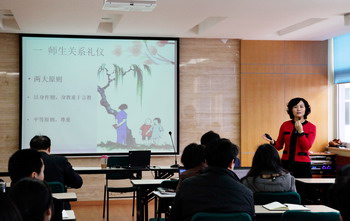 张苑琛老师是美学硕士、传播学博士、美国杜克大学博士后, 中国心理协会会员。她结合学院工作实际,围绕讲座主题,从师生关系礼仪、师生谈心礼仪等几个方面,从校园工作、生活中最常见的坐、立、言、行等视角入手进行剖析,并用大量鲜活生动的事例,详细讲解了在校园内如何知礼仪、用礼仪,言传身教添魅力,行为示范育好人。讲座特别结合中心组成员的实际工作,形象具体地讲解了职业礼仪和社交礼仪。讲解、示范、互动、思考使讲座别具一格,使全体学员进一步理解了文明礼仪在学习、生活和工作中的重要积极作用,收获颇多。