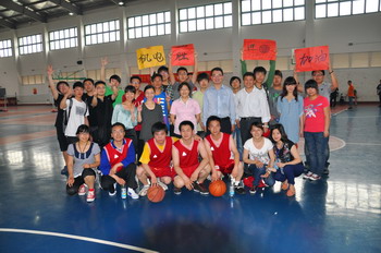 此次决战的两支队伍分别是机电系代表队和经管系代表队。12点比赛准时开始,所有的队员都迅速进入状态,个个精神饱满,斗志昂扬。经过初赛的对抗,每位队员的技巧更加娴熟,速度更加敏捷,投篮更加精准。上半场,经管系代表队稳稳地将球控制在自己手中,比赛过程中,李铭老师一次次完美的运球、过人、上篮,程健老师帅气利落的动作引爆了现场的气氛,全场的欢呼声此起彼伏。机电系代表队也不甘示弱,队员间积极配合,奋力拼抢,攻防有序,稳扎稳打,突破上篮,一度8:8持平,最终上半场经管系代表队以10:9比分暂时领先。下半场比赛中,机电系代表队队员发起反击,将比分追至13平。最后,李旺老师一个漂亮的罚篮锁定胜局,使得机电系代表队最终以14比13的微弱优势赢得了比赛。本场比赛双方队员都发挥出了最佳水平,全场高潮迭起。