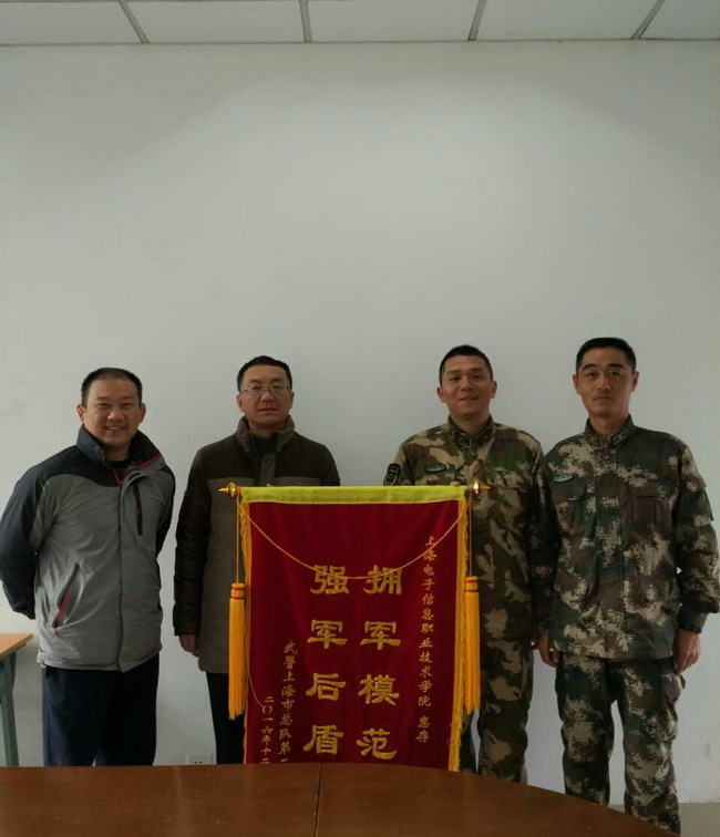 2016年12月8日、9日,我院在室内运动场和上海武警某支队开展了新兵野营拉练宿营及节目演出活动,活动得到了学院公共基础教学部、后勤保障处、信息中心及武装部的大力支持。期间,学院副院长徐松鹤、副院长吴依本看望了支队战士。为感谢学院提供的支持和保障,武警某支队向学院赠送了锦旗。