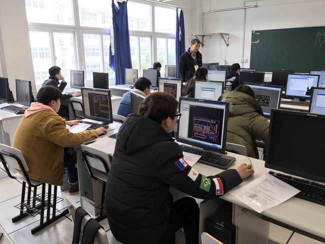 本次理论和技能考核根据上海市人社局和市教委高教处的部署要求,市职业技能鉴定中心派出王政权和叶国明老师两位,刘旭东老师等五位考评员共同参加考评。为了迎接本次考核,双证融通项目组全体老师进行了精心地准备,电子工程系主任朱咏梅老师、邵瑛老师和学院鉴定站吴亚人老师多次进行考前沟通协调,韦峰老师等老师对现场实训材料和其他考务事项做了大量准备工作。《电子产品装配与调试》课程重点考核了三个项目,分别为电子元器件检测、电子产品装配、电子产品调试,考核内容的设计主要考虑以核心技能为主,重点考核项目的规范操作。 《电子线路板版图设计》课程重点考核了两个项目,分别为绘制原理图、设计PCB,考核内容的设计主要以电子线路板版图设计为主,重点考核Protel软件应用。