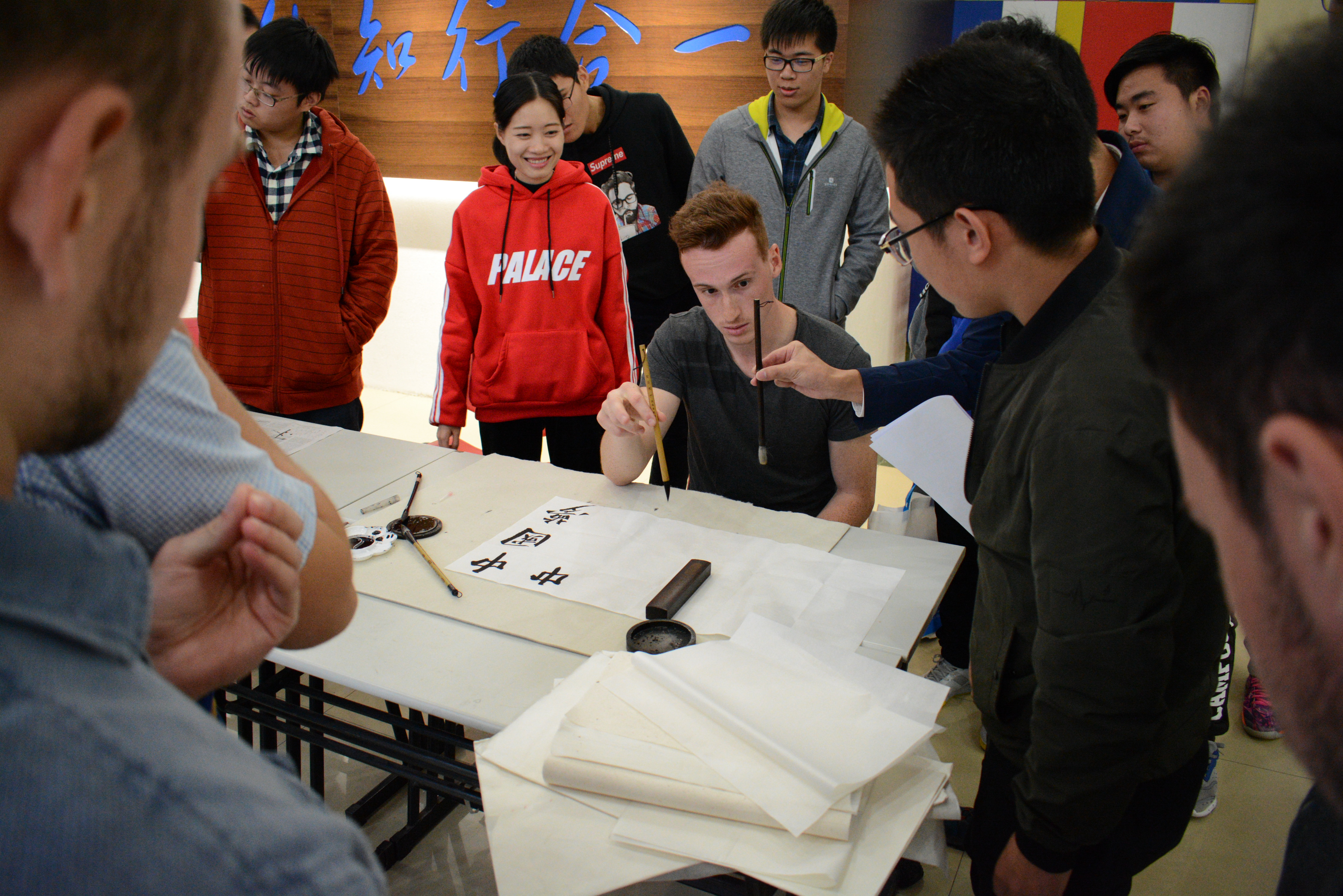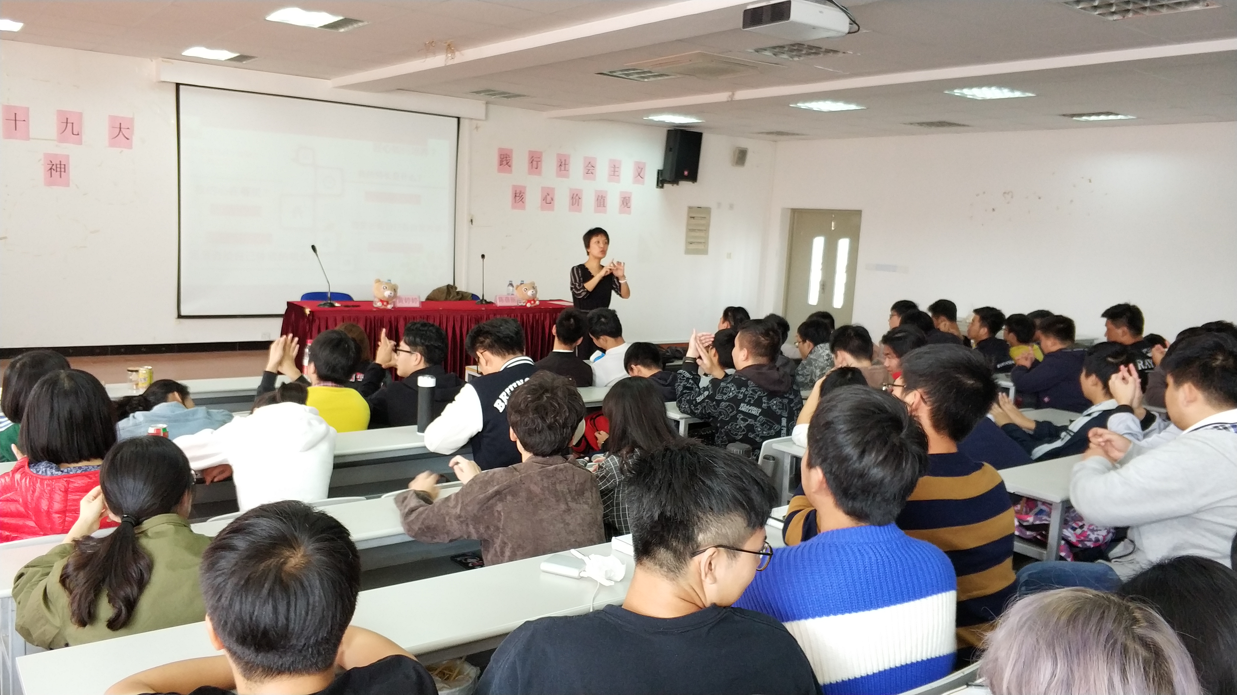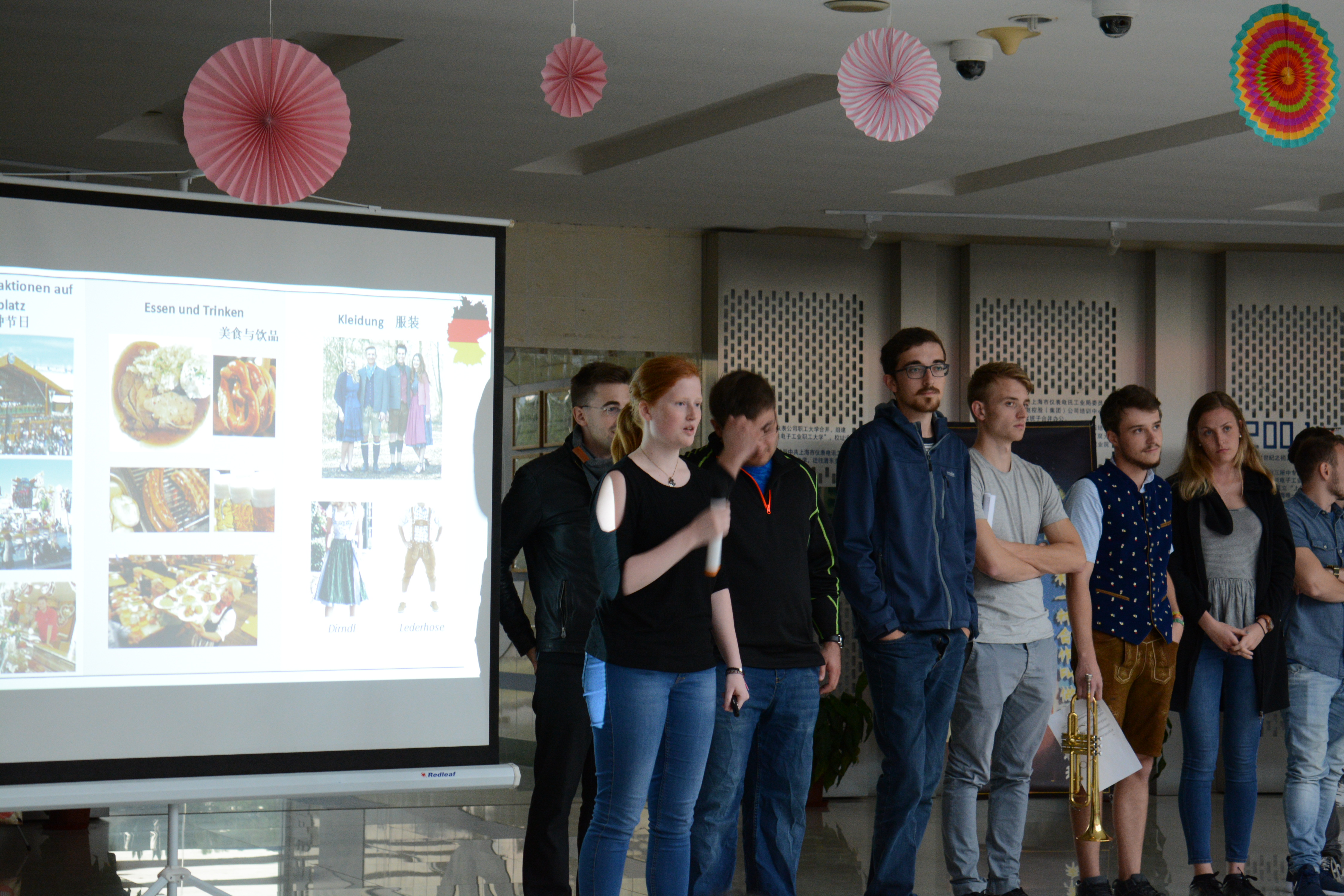 中德美术鉴赏活动于10月31日在建筑以圆顶方体的基座象征着“天圆地方”的上海博物馆如期开展,整个博物馆设有青铜、陶瓷、书法、绘画、雕塑、印章、玉器、钱币、少数民族工艺十个固定陈列厅,另有国际交流书画展等。它把我国的传统文化和时代精神巧妙地融为一体,所得到不同凡响的视觉效果,在世界博物馆之林独树一帜。馆中藏珍贵文物12万件,其中尤以青铜器、陶瓷器、书法、绘画为特色,藏品之丰富、质量之精湛,在国内外享有盛誉,参观不仅能让同学们了解我国古代的珍贵文物,也从喧嚣的城市生活中解脱,让心灵得到一次净化和洗礼;11月1日举办的话聊中德传统文化之瑰宝活动和中华文化传统礼仪微视频大赛相继在B楼大厅和易班网络平台展开,通过中德两国的历史、文化风俗、语言文字等交流呈现给大家不仅是中德两国文化荟萃,更是文化在一个国家所展现的力量,德国交流生的流连忘返和易班网络平台的高额投票率见证了我们中德文化的互动交流;为了贯彻和秉承党的十九大精神,践行社会主义核心价值观,11月2日在I401举办了 “匠心中国”系列课程之党课教育讲座,特邀请了上海师范大学陈蓓丽副教授为师生带来题为《秉承十九大守住“匠心”彰显职业精神——从社会工作看职业精神养成》的讲座,陈教授从社会工作者和专业教师的视角,来阐述如何从本职岗位和工作内容出发来培养自己的职业精神。讲座结合实际社会工作案例,深刻剖析如何培养和恪守自己的职业精神,如何守住爱心,如何守住匠心,师生反响热烈,讲座深受师生好评;此外,德国电影鉴赏也分三个晚上分别进行,通过《鸟瞰德国》无比伦比的德国风光蓝光高清纪录片鉴赏和交流,画质唯美的德国所有经典的景色不仅带给同学们视觉感受上的震撼,也让同学们更全面的了解到了德国的历史和文化。