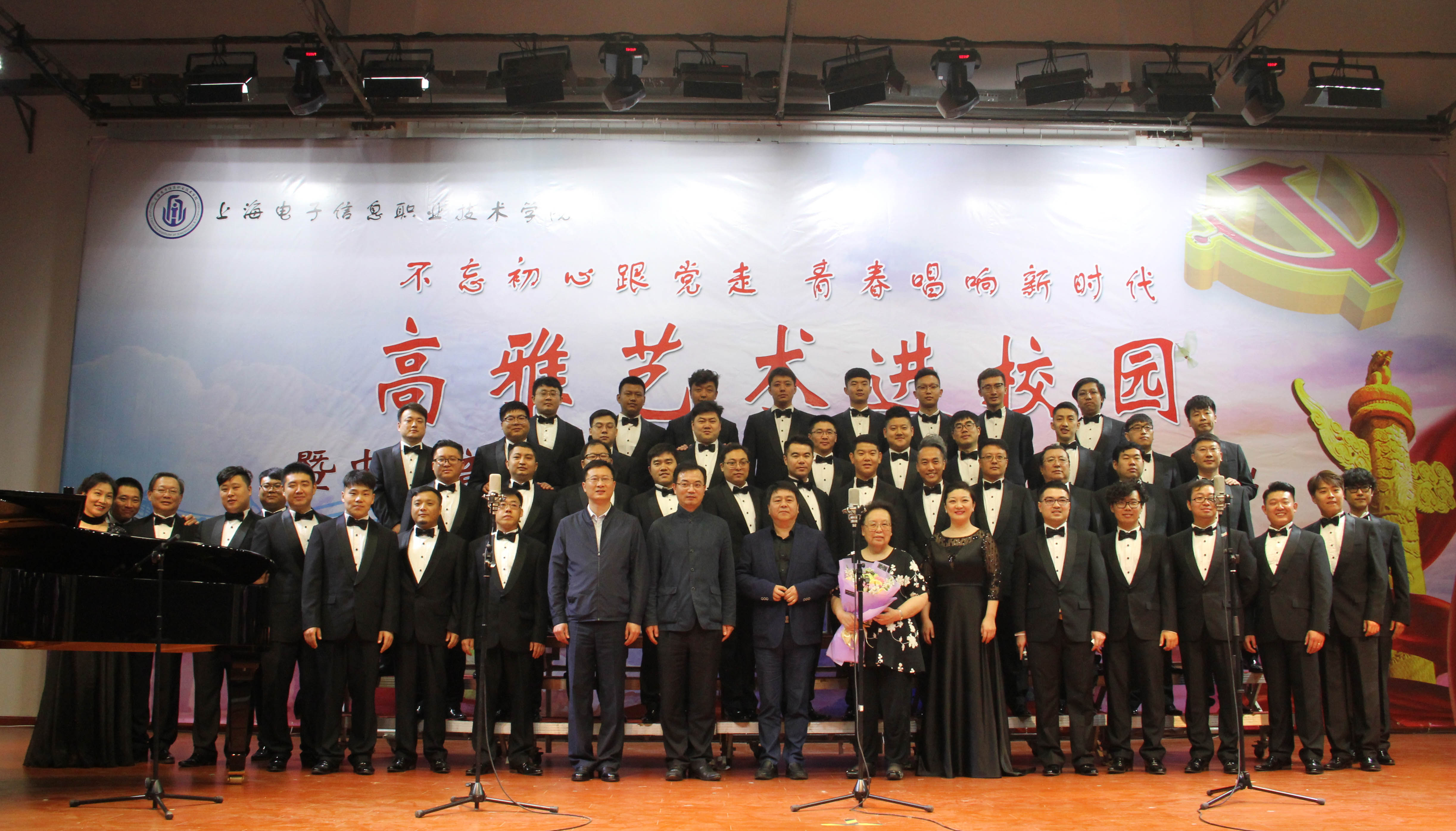 5月8日晚18时,由教育部、文化部、财政部支持的 “不忘初心跟党走,青春唱响新时代”2018年高雅艺术进校园暨中国音乐家协会爱乐男声合唱团专场演出在上海电子信息职业技术学院室内体育馆隆重举行。学校党委书记田钦、学校党委副书记、副校长顾剑锋、副校长张涛以及全校800余名师生代表观看了本次演出。