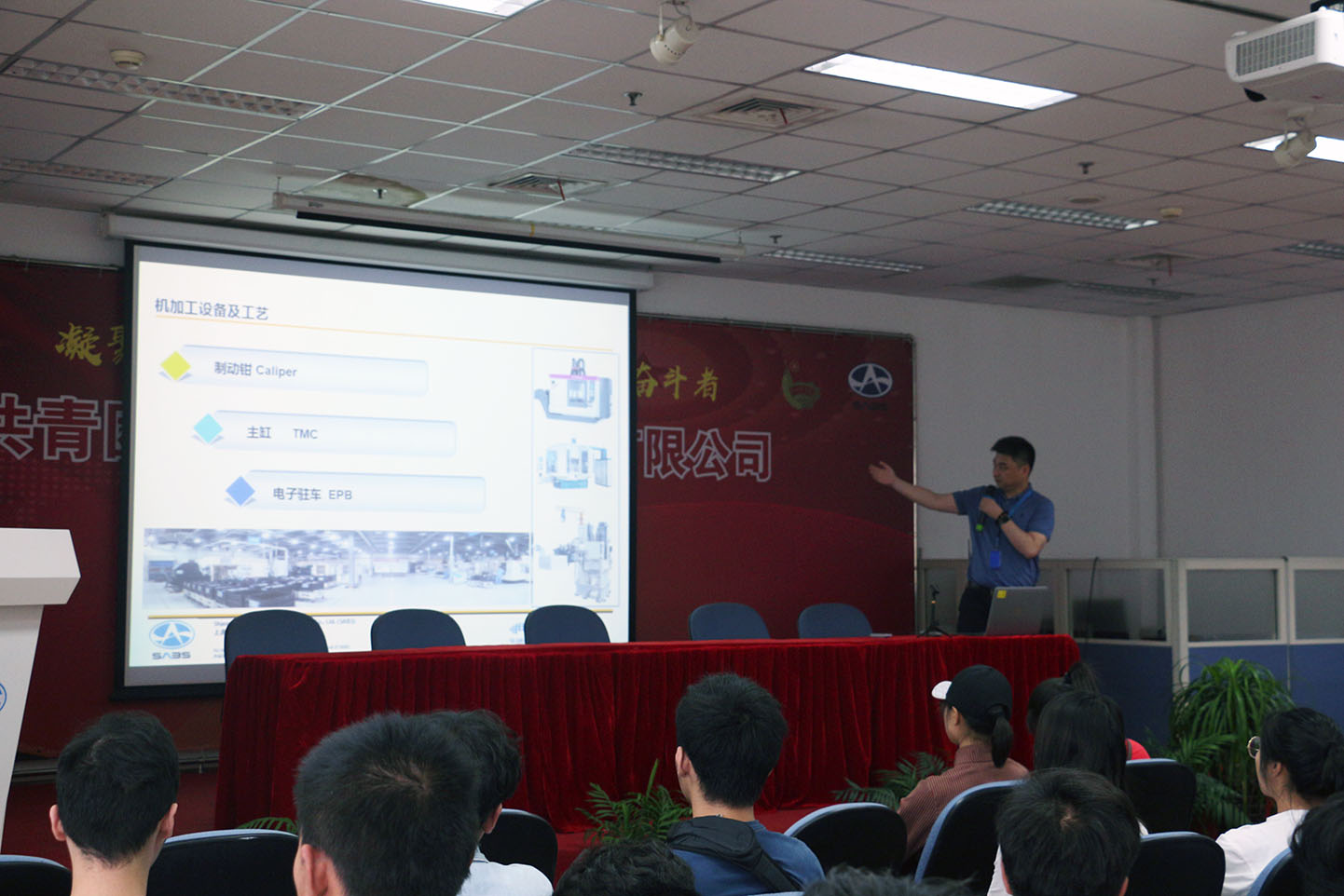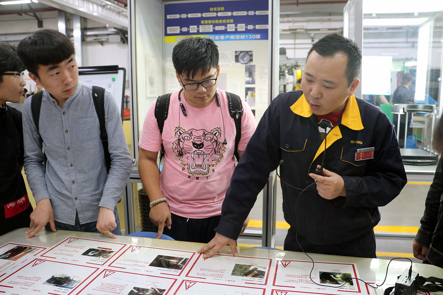 活动当天,公司为同学们安排了内容丰富形式多样的体验课程。来自人事、生产、装配、研发等职能部门的行业老师向同学们介绍了公司的基本情况,主要产品和工艺,介绍了各个职能部门及其协作流程,还介绍了相关人员岗位职责和能力要求,以及企业员工招聘、录用、培训、晋升方面的规章制度。