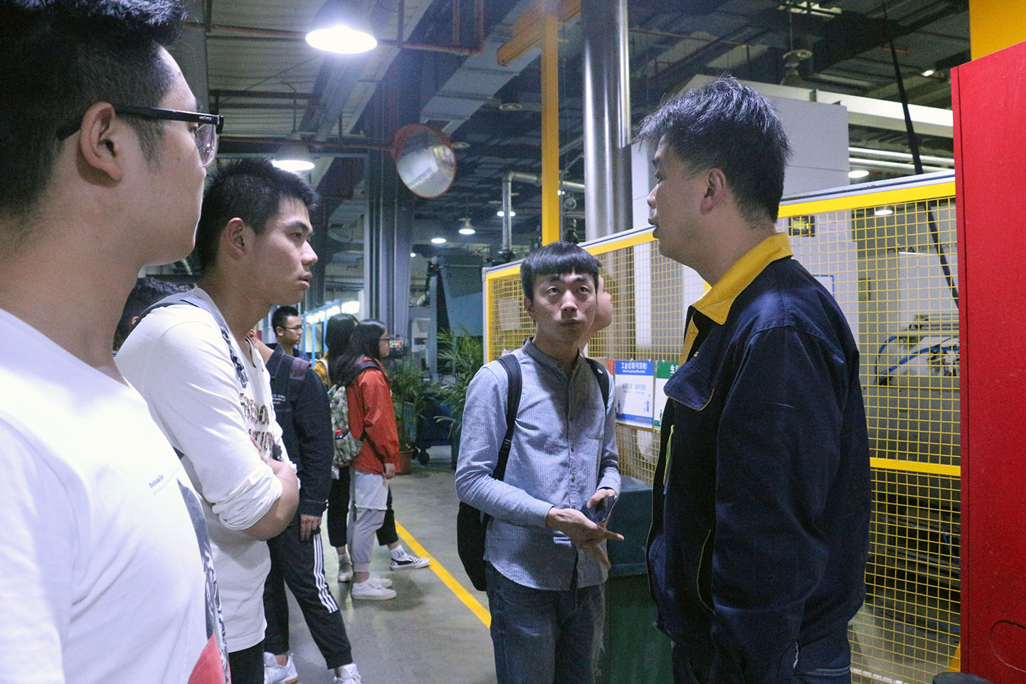 随后,同学们分成两组参观了公司的生产车间、装配车间和研发实验室。通过生产和研发一线老师的讲解,同学更深刻直观的了解到了公司的生产和研发的运作过程,给同学们带了宝贵的体验感受。