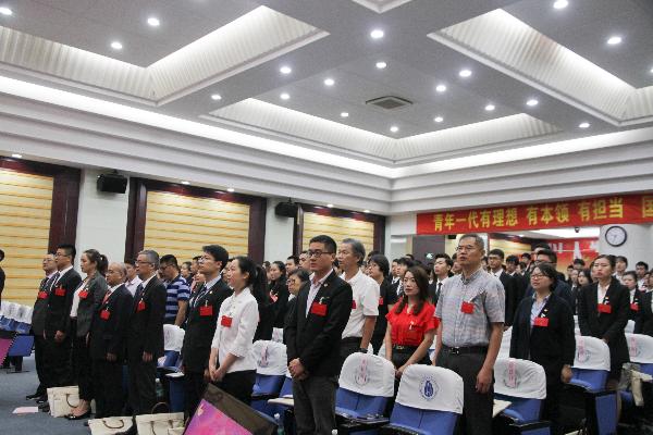 会议进入尾声,全体起立奏唱《光荣啊,中国共青团》,共青团上海电子信息职业技术学院第二次代表大会闭幕!