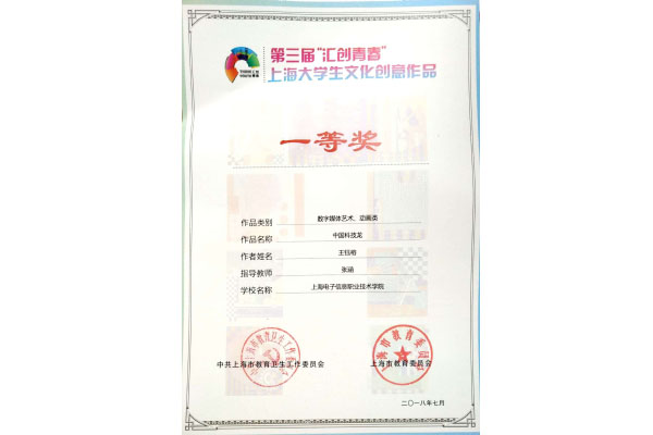 由中共上海市教育卫生工作委员会、上海市教育委员会主办的第三届“汇创青春”——上海大学生文化创意作品展示活动近日公布了各类项目获奖名单。“汇创青春”——上海大学生文化创意作品展示活动是国家为积极推进上海“设计之都”建设,大力营造全市文化创新和创意产业发展的生态环境,旨在展示上海高校的创新创业教育成果,包含视觉传达、数字媒体艺术、环境设计、服装设计、产品设计、工艺美术、互联网+文化创意、戏剧舞蹈、音乐艺术等九大门类,自2016年以来连续开展三届,旨在大力推动上海高校创新创业教育,培养青年大学生的创新创业意识,为全市文化创新和创意产业发展营造优良环境。在学校领导的关心和重视下,由校团委牵头积极搭建平台,各二级学院团总支认真组织、积极参与,在各二级学院党政领导的支持下,推出了一大批有特色、有质量的文化创意作品。最终我校设计与艺术学院学生王钰榕、指导教师张涵的《中国科技龙》作品获得“数字媒体艺术、动画类”一等奖;设计与艺术学院学生陈锦涛、指导教师王奕的《logo设计“民众影业”》作品获得“视觉传达设计类”三等奖。