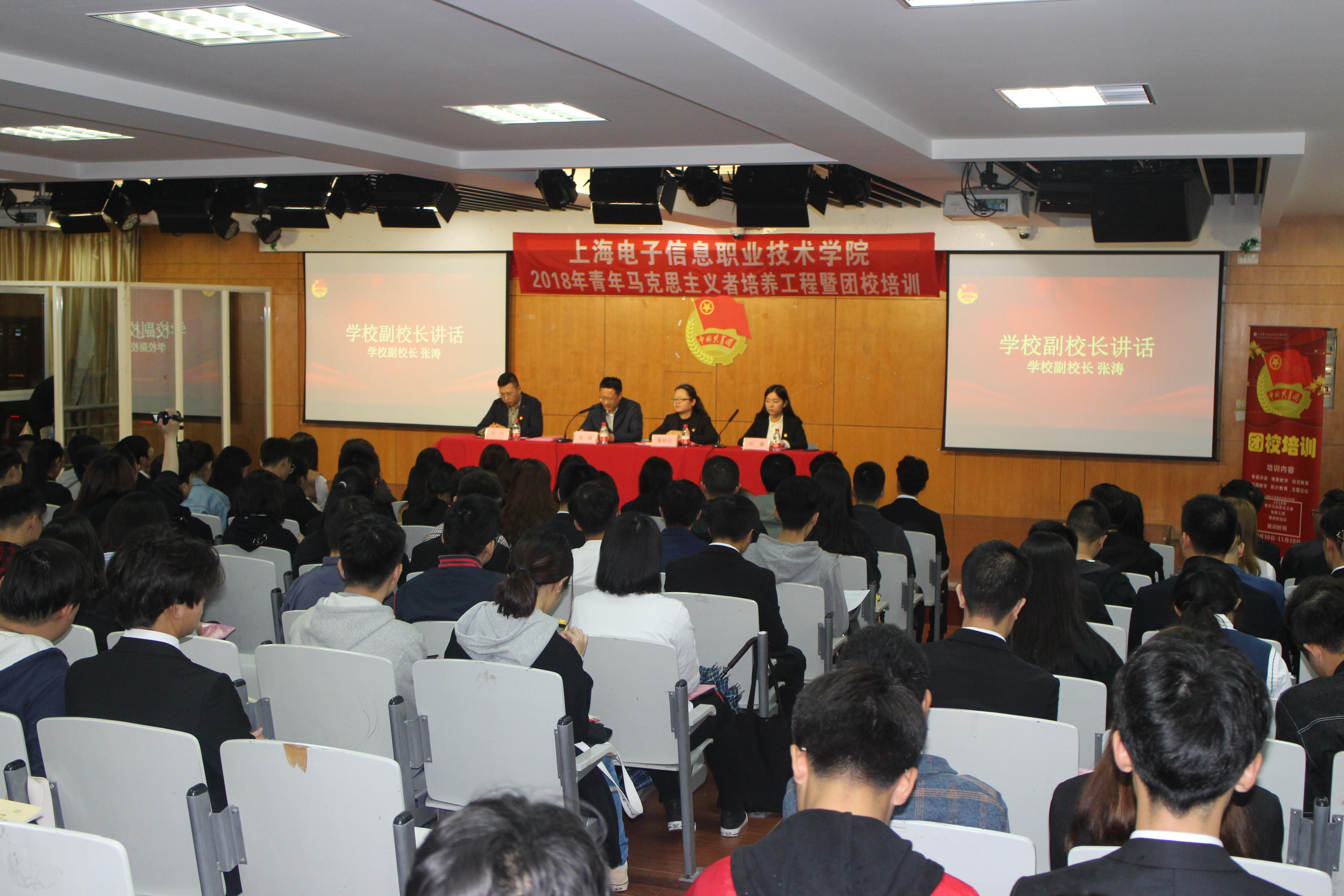 学校团委为全面贯彻落实党的十九大精神,深入学习习近平新时代中国特色社会主义思想,学习宣传团的十八大重要内容,庆祝建团96周年,纪念马克思诞辰200周年,为在广大青年学生中培养造就一大批思想端正、坚定信仰、知识广博、创先争优的马克思主义者,坚决捍卫和拥护中国共产党的领导,上海电子信息职业技术学院2018年青年马克思主义者培养工程暨团校培训第八期、第九期、第十期开班典礼分别于2018年10月30日和11月7日在I401阶梯教室举行。学校副校长张涛、团委书记蔡林洁、团委副书记何川、团委办公室主任兼组织部部长倪娜以及各二级学院团总支书记(负责人)出席开班典礼。开班典礼由团委办公室主任兼组织部部长倪娜主持。