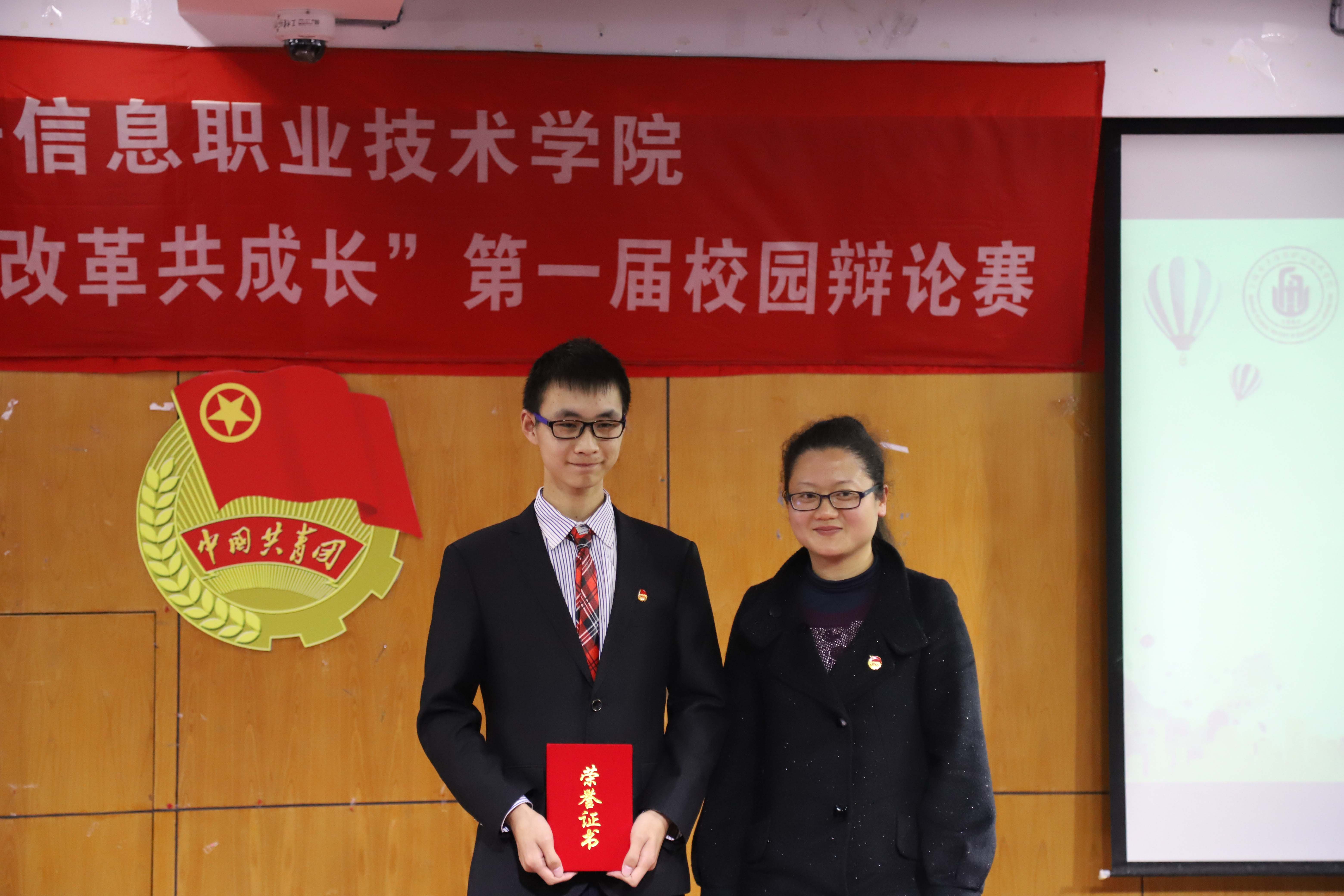 为贯彻落实十九大和全国教育大会精神,结合改革开放40周年,鼓励广大青年学生通过辩论的方式增强思辨能力、表达能力,在辩论中学习成长。2018年11月29日晚,由校团委和校语委办共同主办,校学生会承办的“青春思辨——我与改革共成长”第一届校园辩论赛决赛在I401教室成功举办。出席本次大赛并担任评委的有校团委书记蔡林洁老师,教务处副处长周玉霞老师,学工部校易班发展中心指导老师王琳老师,同时莅临本次大赛的还有校团委副书记何川老师、各二级学院团总支书记或负责人以及各二级学院学生代表。