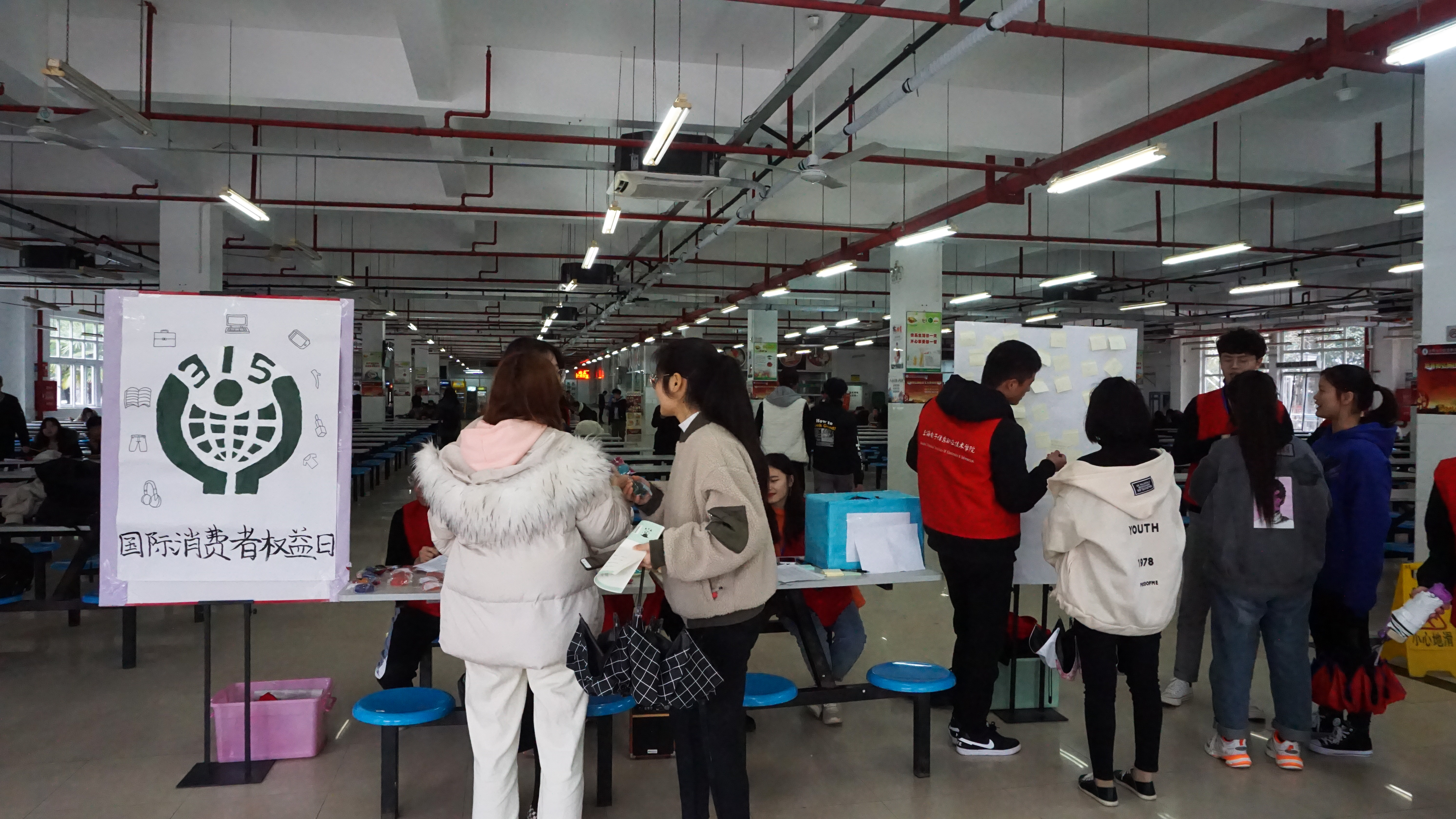 为响应全国“两会”精神,进一步提高我校师生维权意识,营造法制校园。2019年3月14日中午,校团委组织学生开展“维护自身权益 共建法制校园”三一五国际消费者权益日主题活动。