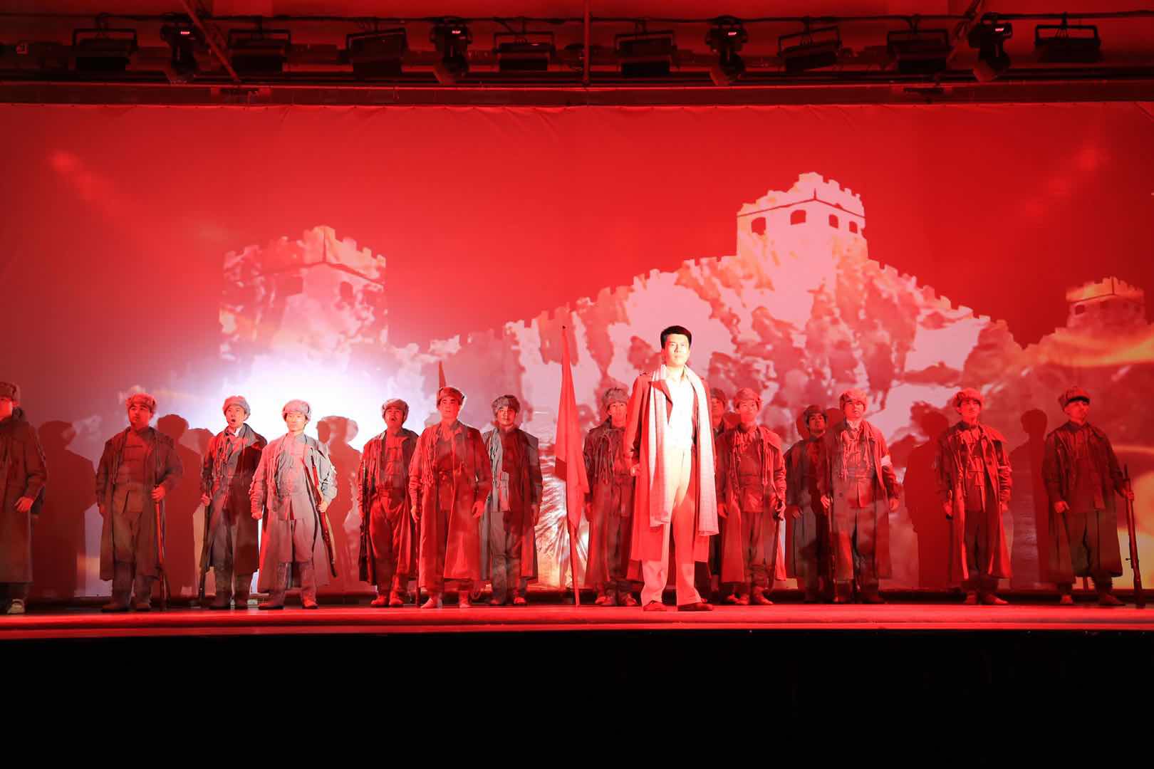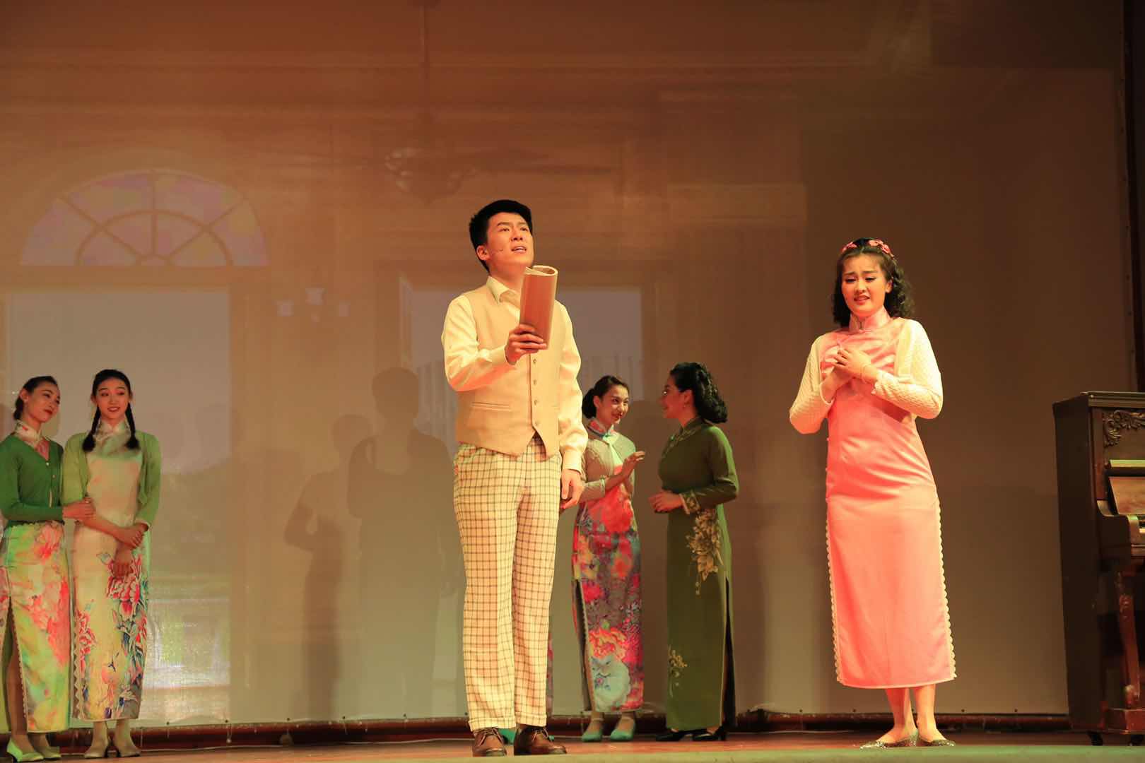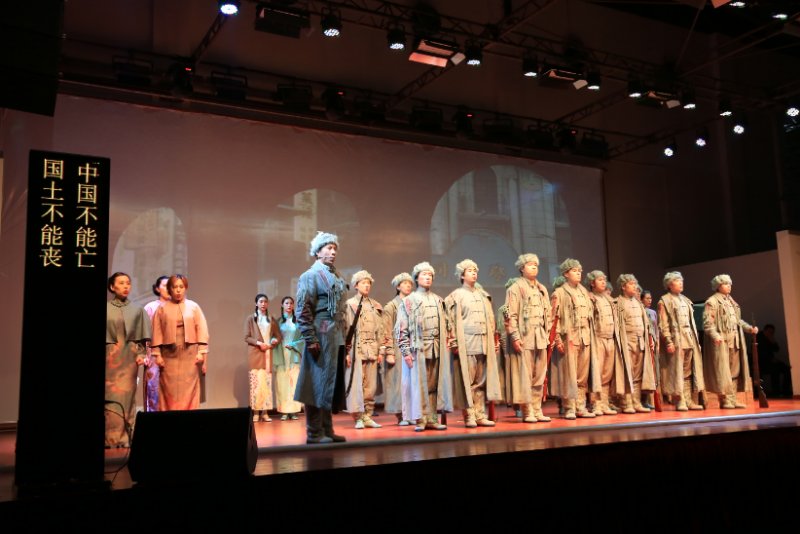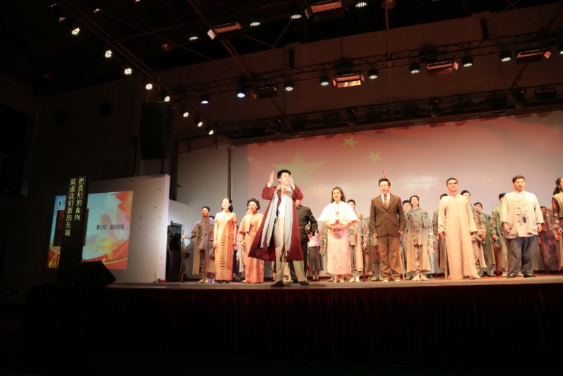 悠扬的音乐响起为演出拉开序幕,音乐剧《国之当歌》精彩上演,来自上海歌剧院的演员们精彩演绎了人民音乐家聂耳与左翼戏剧家田汉从相识到相知,直至共同创作“义勇军进行曲”的故事。剧情起自“倾听民众苦难之声”,继之以“吹响民族救亡号角”,融汇上海的都市风情和抗战的历史烟云,将聂耳激情而朴实的歌曲与音乐剧的现代演绎方式相结合,并以“国歌之父”聂耳的艺术人生为主线,展现了他的抱负与理想,弘扬了他的爱国主义精神。音乐剧不仅为我校师生上演了一场极具艺术品位的视听盛宴,更上了一堂传承爱国主义并激扬浩然正气的生动一课,专场演出在师生经久不息地掌声中落下帷幕。