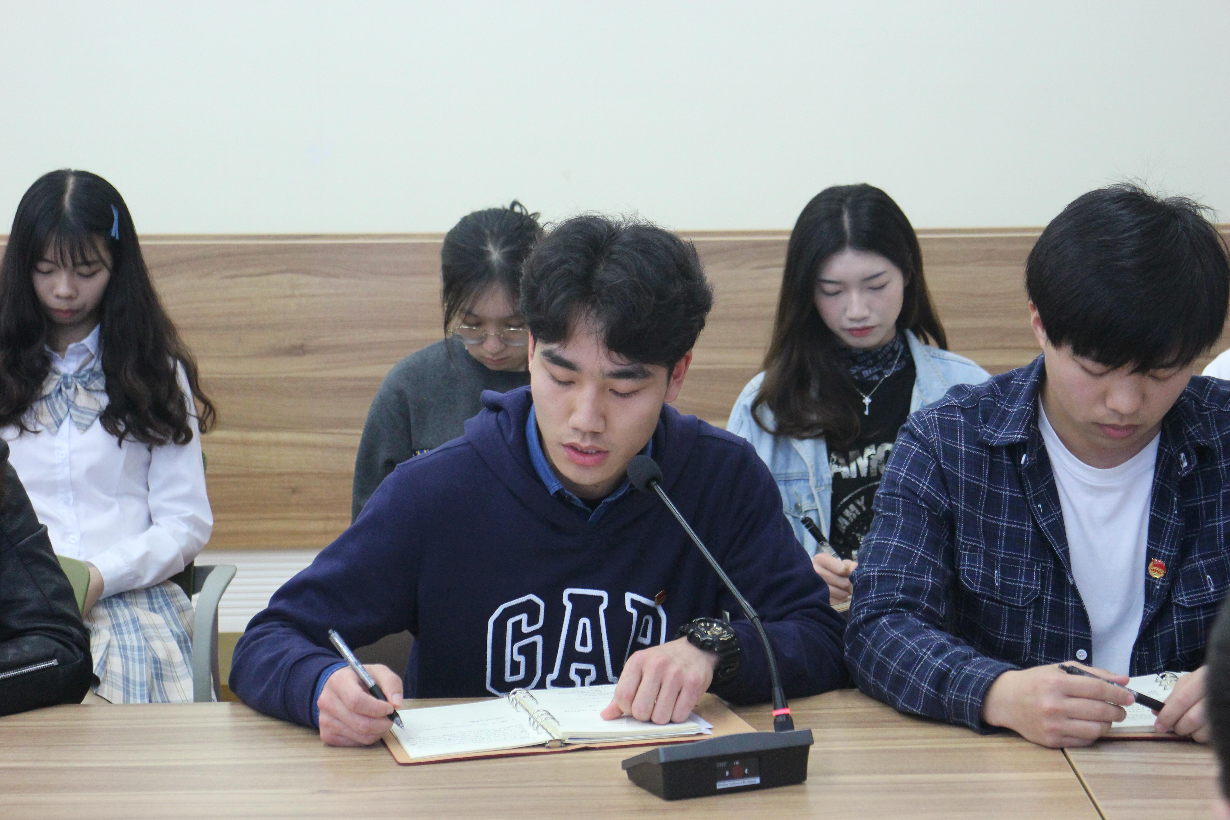 校学生会主席刘书君表示,1919年5月4日,北京街头传出“外争国权、内惩国贼”的口号,由一批批先进知识青年为先锋掀起了一场伟大的爱国革命运动。五四运动经过百年历程,从五四运动进入到新时代,当代青年应做好使命承接工作,将五四精神永久传承下去。青年兴则国家兴,青年强则国家强。习近平总书记对我们新时代青年作了六点要求,我们作为一名学生干部要严格要求自身,做好模范带头作用,坚定理想信念,奋发有为、勇担当,立鸿鹄志、怀家国情。带动身边同学、朋友以青春奉献之力来推动国家进步、促进民族复兴,共同完成这场伟大的使命。