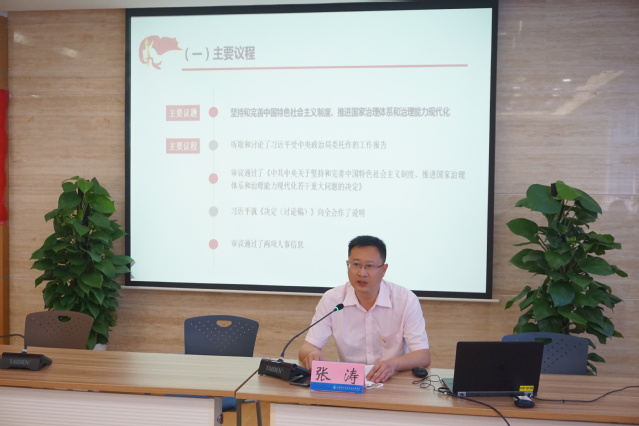 宣讲会上,张涛副书记围绕学习贯彻党的十九届四中全会精神这一主题,对全会提出的总体要求、总体目标和重点任务进行了系统解读,深刻阐明了党的十九届四中全会的重大意义和精神实质,以鲜活的案例和真实的故事生动阐释了中国特色社会主义制度和国家治理体系的显著优势。他指出,党的十九届四中全会是一次开创性的、具有里程碑意义的重要会议,对进一步完善国家治理体系和治理能力现代化具有十分重要的意义,也为职业教育培养高素质人才提供了方向和根本遵循。
