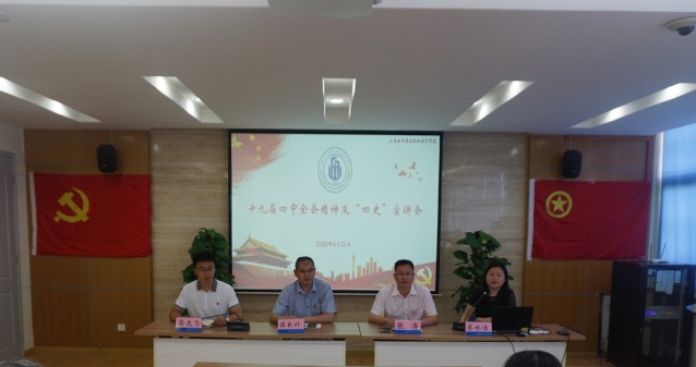 为深入贯彻习近平新时代中国特色社会主义思想,全面贯彻落实党的十九届四中全会精神和习近平总书记考察上海重要讲话精神,同时落实市委、市教卫工作党委《关于开展党史、新中国史、改革开放史、社会主义发展史学习教育的实施方案》要求,2020年6月12日,党的十九届四中全会精神及“四史”学习教育宣讲会以线上线下相结合的方式在奉贤校区A207顺利举行。党委副书记、副校长张涛、马克思主义学院副院长茌良计、团委书记蔡林洁、学工部副部长栾文飞担纲主讲。各二级学院(含中专部)学生工作负责领导、校团委工作人员、各团总支负责人以及团学代表共200余人参加学习。团委书记蔡林洁主持会议。