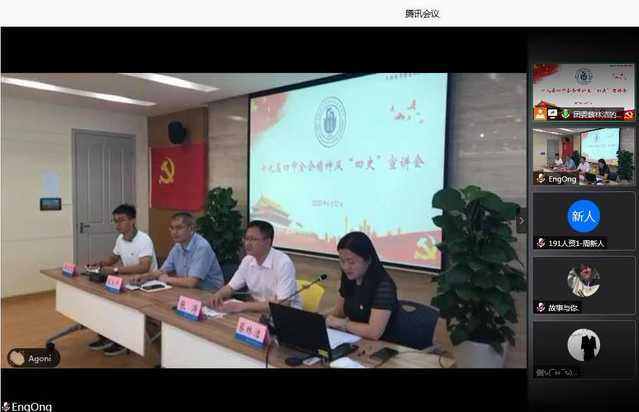 马克思主义学院茌良计副院长从“学习党史,锻炼组织队伍”“学习新中国史,传承创业精神”“学习改革开放史,弘扬创新精神”“学习社会主义发展史,坚定道路自信”四个方面做了专题宣讲。学工部栾文飞副部长、校团委蔡林洁书记分别以“让初心薪火相传,把使命永担在肩”“深入学习‘四史’,坚守初心使命”为题,对学生工作条线“四史”学习教育做出具体工作布置和要求。学工部、校团委将分别通过主题教育、演讲比赛、青马工程、主题团课等载体,进一步坚定青年学生的马克思主义信仰、增强青年学生对实现中华民族伟大复兴中国梦的信心。