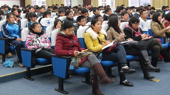 童潇老师以“高举旗帜 转型发展 全面建成小康社会”为主题,从十八大召开的时代背景,十八大的主题、内容、创新点与关键词,十八大精神指引下的青年发展机遇三方面畅谈了对十八大报告的理解与认识,提出了改革事业的难点与对策,引起了在场听众的深思与回味。报告中,童老师用精辟的语言、生动的讲解,结合他自身的实际经历与切身感受全面阐述了十八大报告的重大思想观点、重大理论创新、重大战略部署和重大意义。报告脉络清晰、生动形象,深入浅出,通俗易懂,通过对十八大的新思想、新观点、新要求进行分析和解读,对科学发展观的内涵和实质、建成小康社会的战略任务的辅导,为广大团员青年全面准确理解把握党的十八大会议精神提供了一把“金钥匙”。报告结束后,戚书记向广大团员青年提出希望并号召大家一定要学习好、领会好、贯彻落实好党十八大精神。