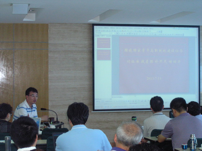 为了认真梳理骨干院校建设以来各个项目建设的进展情况,以便总结经验,破解难题,在接下来的时间内,高质量地按时完成各项建设任务。2013年7月12日至13日,学院领导杨秀英、顾剑锋、徐松鹤、严晓华、吴依本、周俊瑜等带领全体中层干部组织开展了暑期干部团队学习,围绕国家骨干院校建设任务,对标准、找差距、补不足、增动力。