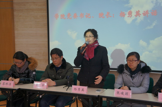 2013年12月24日,中德学院召开2013年度中德学院学生表彰大会暨冬季送温暖活动,学院党委书记、院长杨秀英出席会议。