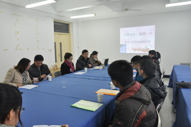 机电工程系方林中老师、单贵老师、何永艳老师、辅导员老师以及学生代表参加了送温暖活动。(机电工程系 邢方霞)/p>