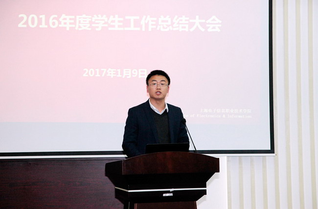 共话过往,畅谈新岁。2017年1月9日,学院2016年度学生工作总结大会在C108报告厅隆重召开。学院领导、各系(二级学院)书记、中专部学生工作负责人、学生秘书、全体辅导员(班主任)参加会议。