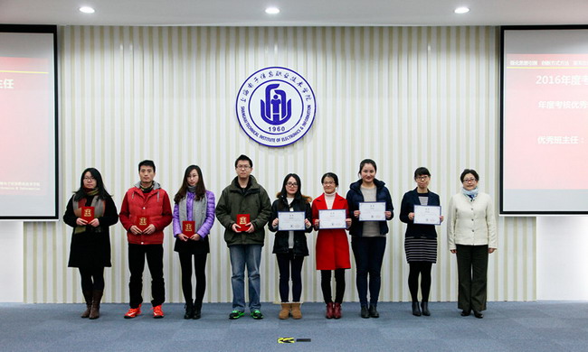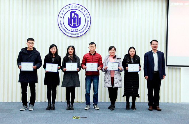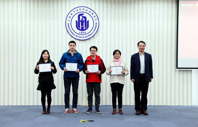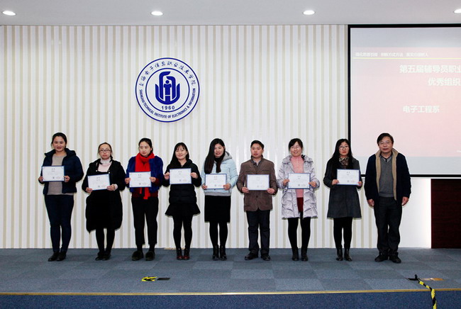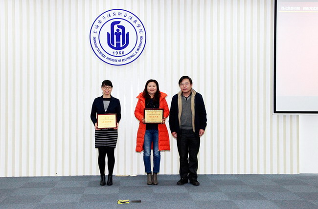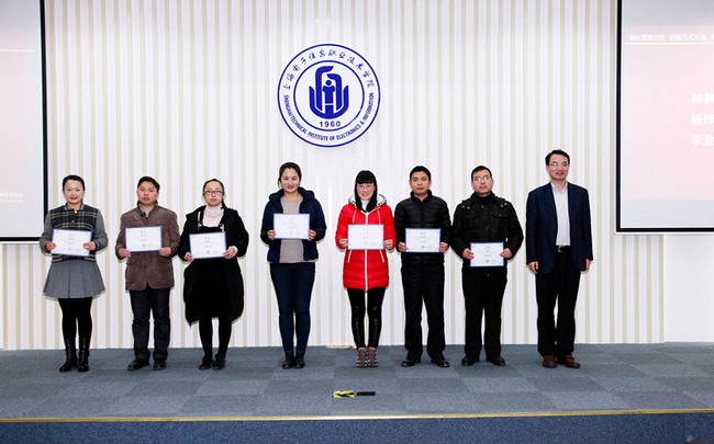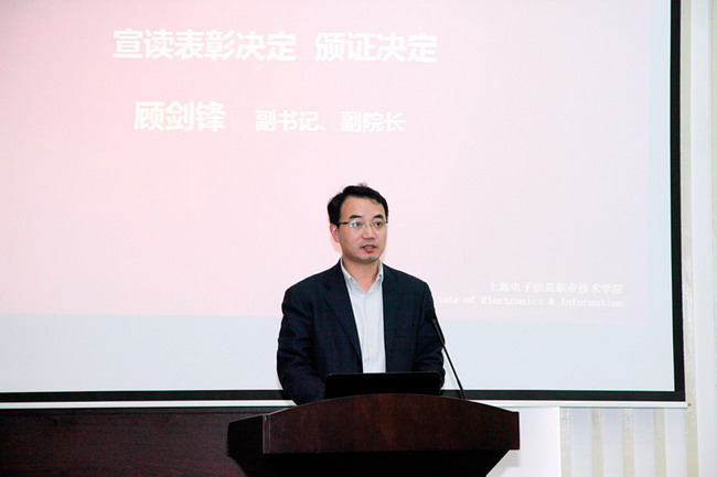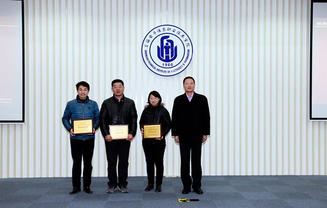 学院党委副书记、副院长顾剑锋宣读了《关于表彰2016年度获奖集体和个人的决定》以及《关于颁发辅导员专业化发展证书的决定》,并为辅导员颁发专业化发展证书。副院长张涛向第七届学生职业技能大赛优秀组织奖获得单位计算机应用系、经济与管理系、外语教学部颁奖,副院长吴依本向第五届辅导员职业技能大赛获奖辅导员和优秀组织奖获得单位电子工程系、中德学院颁奖,党委书记、院长杨秀英向2016年度考核优秀辅导员、优秀班主任颁发了奖状。