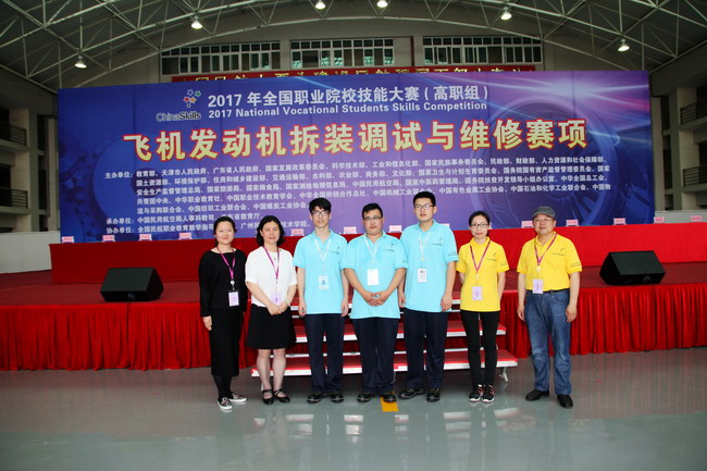 当天下午,窦争妍副校长刚抵达广州,就直奔设在广州民航职业技术学院的“飞机发动机拆装调试与维修”项目赛场。她与正在场外等候的中德学院指导教师和带队教师亲切交流,详细了解参赛选手的训练和备战情况,并通过观看大屏幕实时转播,了解比赛进程。窦争妍副校长还与指导教师们交流了航空维修类专业建设发展情况,她表示全国职业院校技能大赛是促进职业教育改革发展的重要抓手,大赛的示范、引领作用日益凸显,要将大赛的先进技术和实践经验用于反哺教学,将对学生的敬业、责任、规范、协作的职业精神和职业素养培养渗透在日常教学中。她鼓励专业教师们在强手如林的环境下,敢担当,勇作为,将我校飞机电子和飞机维修这个虽然年轻却发展后劲十足的专业做出特色、做出品牌。