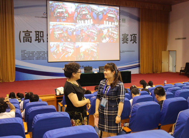 杨校长一抵达济南,就直奔市场营销技能赛项场地—山东商业职业技术学院。她与参加大赛的经济与管理学院带队教师、指导教师亲切交流,并通过观看大屏幕实时转播,详细了解比赛进程和参赛选手的训练和备战情况。当晚,杨秀英校长还来到师生们的驻地,为选手们加油鼓劲,叮嘱同学们放下包袱,调整心态,轻装上阵,展示出我校师生精神风貌和技能水平。