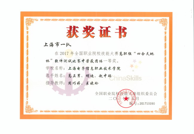 2017年6月5日,在全国职业院校技能大赛许昌赛区举行的比赛中,来自全国29个省、直辖市共87支全国代表队经过四个小时的激烈角逐,最终由我校通信与信息工程学院软件技术专业学生高正男、明迪、赵中瑞,指导老师周巧婷、王晓玲组成的代表队在全国职业院校技能大赛高职组“四合天地杯”软件测试比赛中脱颖而出,荣获团体一等奖。 软件测试赛项是今年首次列入国赛的项目,我校学生经过长达三个月的艰苦训练,克服种种压力和困难,最终不负众望,勇夺一等奖。 /p>