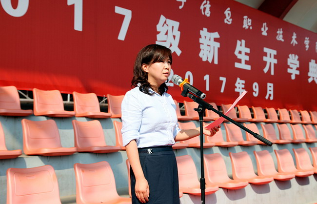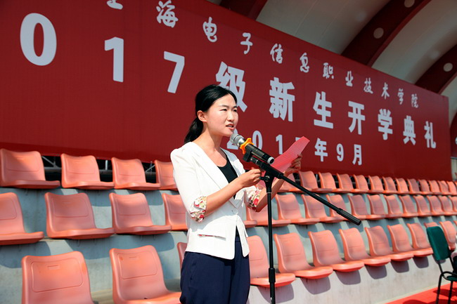 学校党委书记、校长杨秀英教授对全体新生的到来表示热烈欢迎。她说,在职业教育飞速发展的今天,社会需要大量的高素质技术技能人才。实现人生价值,承担社会责任,是青年学子的使命与担当。我们要紧密团结在以习近平同志为核心的党中央周围,扎实办好社会主义大学,积极培育和践行社会主义核心价值观,坚定中国特色社会主义道路自信、理论自信、制度自信、文化自信,让学生成为德才兼备、全面发展的人才。同学们如何担当使命,成长成才?杨校长给出了她的答案:第一,要了解学校历史与现实,与校共进共强。作为国家骨干高职院校,上海电子信息职业技术学院在教学改革、环境建设、文化传承方面都有了长足发展,育人质量不断提升,社会影响不断扩大。同学们要传承“尚德修能·知行合一”的校训精神,为校争光,与校共荣共奋进。第二,要掌握有效的学习方法,理论与实践相结合。做自己学习生活的主人,养成良好的学习习惯。广泛阅读,拓展思维,丰富课外实践活动,让理论与实际互为推进。第三,要培养团队精神,学会换位思考。无论是社团活动、技能赛事还是文体活动,都是同学们取长补短、共同成长的难得机会。大学友谊是人间最真诚的情感,是人性最质朴的交流,是值得同学们追忆一生的美好经历。第四,慎思明辨,坚守良知。要学会独立和理性地思考,时刻保持头脑的清醒,在大是大非面前明辨是非,在功利面前坚守良知。第五,严于律己,敢于担当。“修身、齐家、治国、平天下”,不断提升自我,进而兼济天下、奉献社会,才能不负祖国和社会的期望。