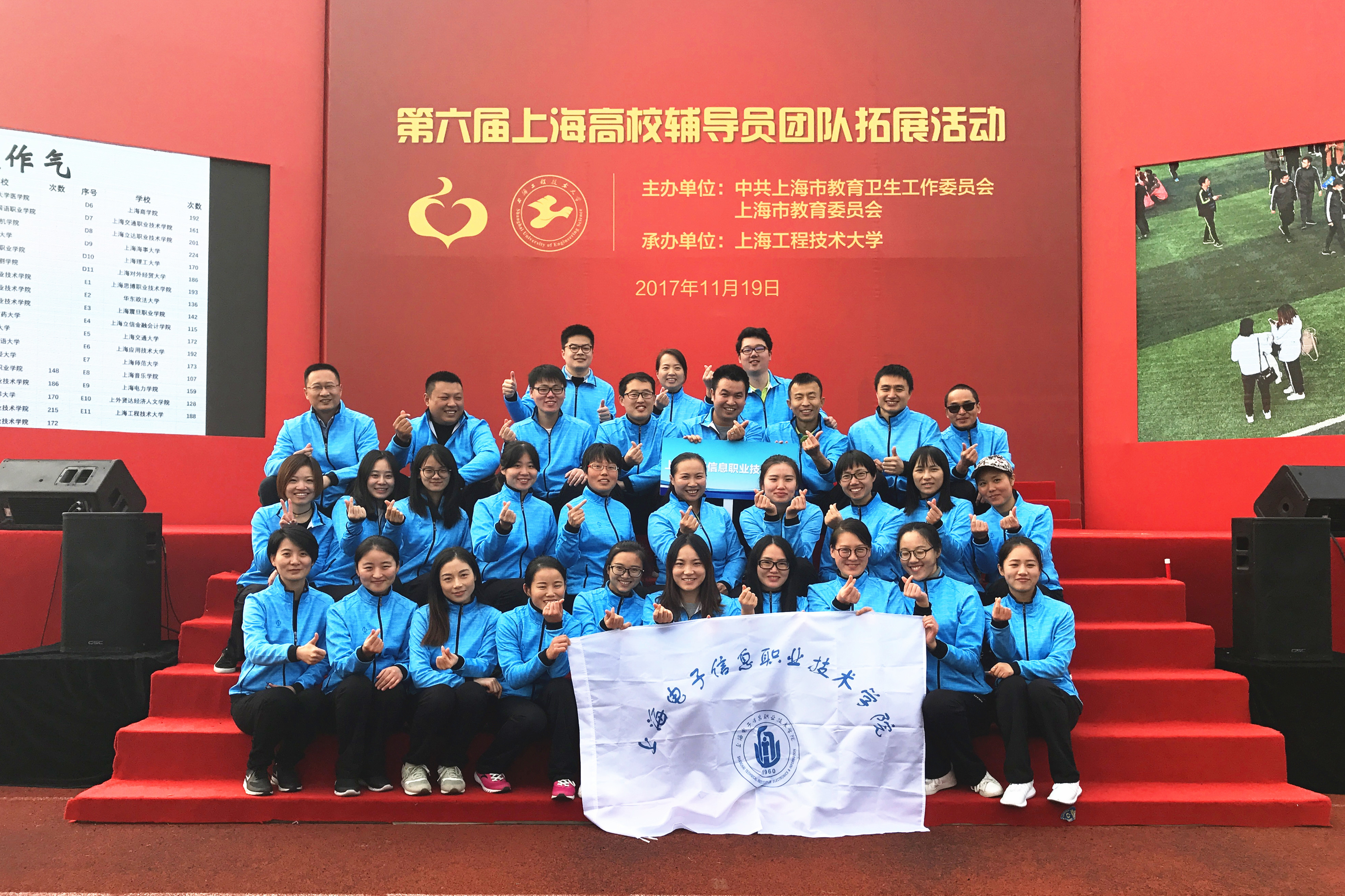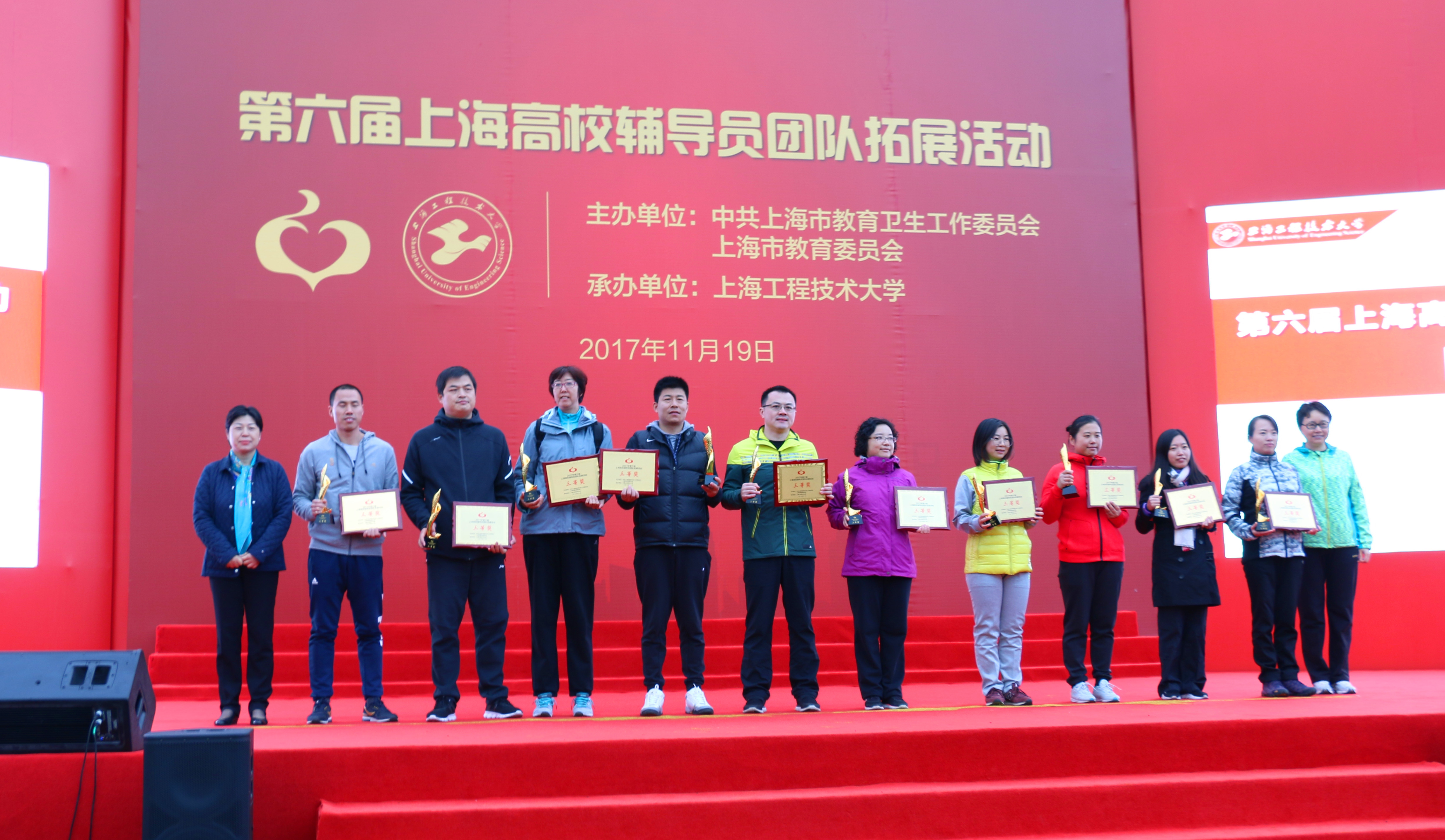 为全面贯彻落实党的十九大精神,进一步提升高校辅导员的职业能力和工作水平,建设一支高素质、高质量、高水平的辅导员队伍,2017年11月19日,由中共上海市教卫工作党委、市教委主办的“2017年第六届上海高校辅导员团队拓展活动”在承办单位上海工程技术大学举行。学校副校长张涛和学工部部长邵菁同30名辅导员一起参加了此次活动。我校辅导员代表队团结一心、奋勇拼搏,在参赛的53所高校中名列16,最终荣获团体三等奖。