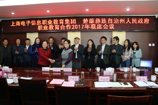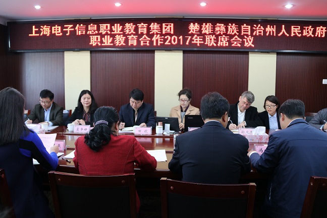 11月20日上午,“上海电子信息职教集团与楚雄州人民政府职业教育合作2017年联席会议”在楚雄技师学院召开。上海电子信息职业技术学院党委书记田钦、校长杨秀英、副校长窦争妍、上海电子信息职业教育集团秘书长、学校校企合作处处长李晓峰等10位领导专家参加了会议。
