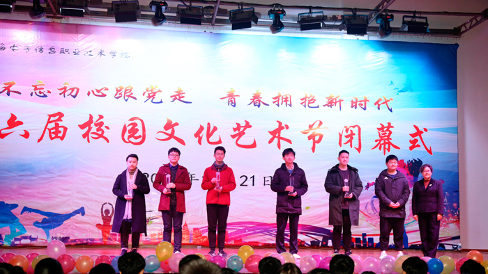 12月21日晚,在深入学习贯彻落实党的十九大精神,推进学校优质高职院校建设之际, “不忘初心跟党走 青春拥抱新时代”第六届校园文化艺术节闭幕式在学校室内运动场隆重举行。出席本次校园文化艺术节闭幕式的有全体党政领导、二级学院党总支书记、学工部(学生处)、团委、二级学院团总支书记以及师生代表。