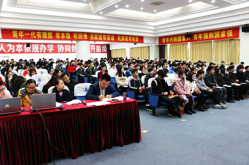 不忘初心,敦品励学,涵养优良学风;牢记使命,明辨笃行,领航青春梦想。在全党全国深入学习贯彻党的十九大精神和习近平新时代中国特色社会主义思想之际,为总结学校一年来的学生工作成果,凝聚人心,激励先进,发挥优秀学生集体及个人的示范引领作用,2017年12月28日,学校在C108报告厅召开2017年度学生表彰大会,学校党委书记田钦,校长杨秀英,副校长窦争妍、徐德明、张涛出席大会。