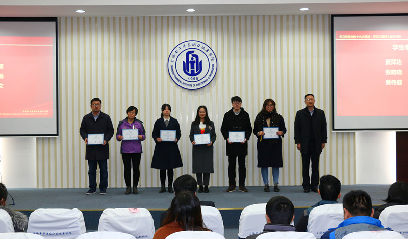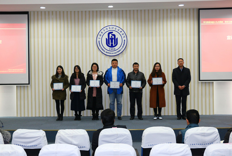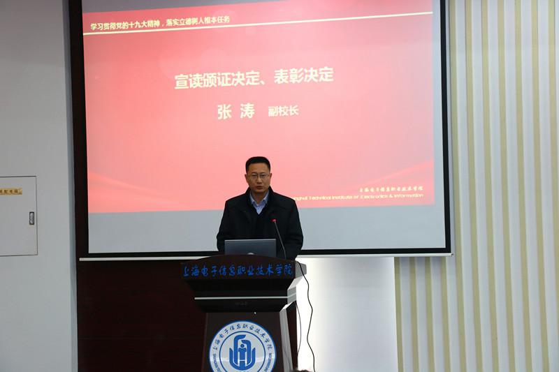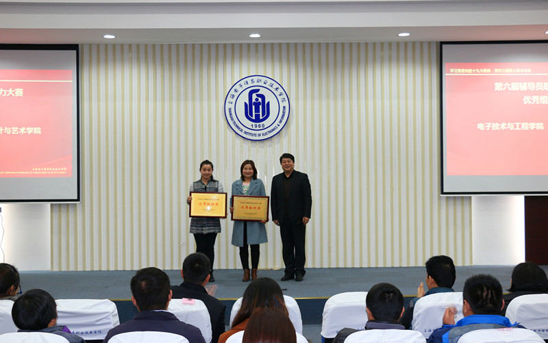 副校长张涛宣读了《关于表彰2017年度辅导员职业能力大赛获奖集体和个人的决定》以及《关于颁发辅导员专业化发展证书的决定》,并为辅导员颁发专业化发展证书。党委书记田钦为学校第六届辅导员职业能力大赛获奖辅导员王山月等8位老师和优秀组织奖获得单位电子技术与工程学院、设计与艺术学院颁奖。