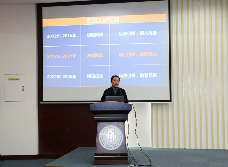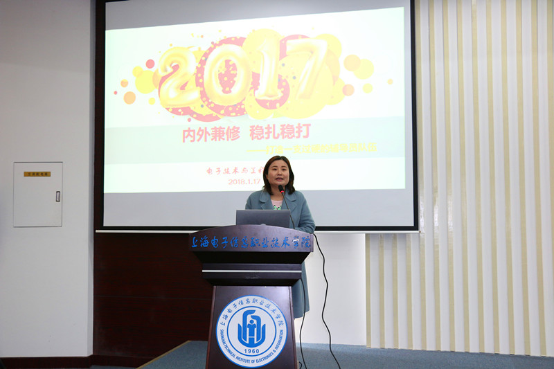 2017年是学校学生工作开拓创新、富有成效的一年。电子技术与工程学院党总支书记杨莹以《内外兼修、稳扎稳打----打造一支过硬的辅导员队伍》、机械与能源工程学院辅导员王欣以《基于心理咨询辅导的学生建设实践》、中专部班主任黄颖以《点点滴滴都是爱》、易班发展中心主任陈真以《项目建设提升工作质态》为题,分别围绕着辅导员队伍建设、辅导员(班主任)工作经验、网络思想政治工作做了交流发言。