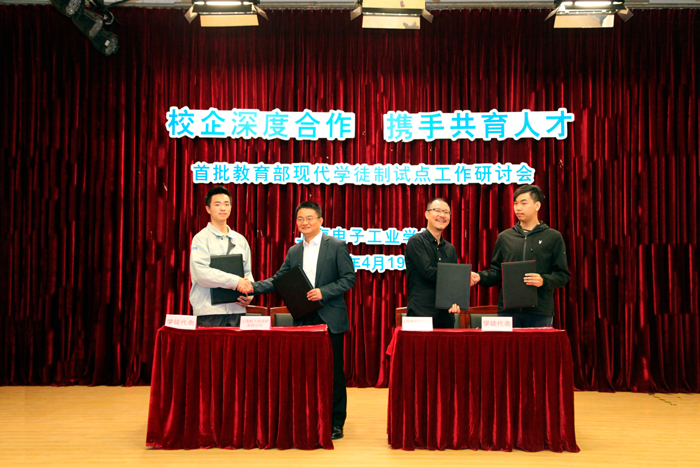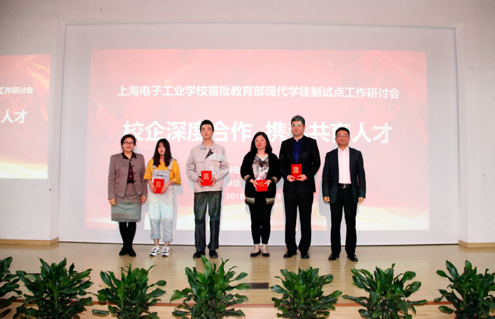 作为现代学徒制试点工作的总结回顾,研讨会上,学校和企业对虚心好学、锐意进取的优秀学徒代表,悉心指导、“出活给力”的优秀师傅代表进行了表彰,并由全体与会代表共同见证了公司领导和学生代表签订岗位意向书。简短而庄严的签字仪式是企业对学徒表现的认可,也是现代学徒制试点工作取得实质性成效的体现。