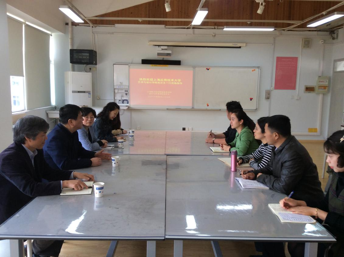 学校党委书记田钦,学校党委办公室沈瑞环老师,设计与艺术学院党总支副书记高晓昧,党总支组织员郭云春及部分设计与艺术学院教师接待来访。