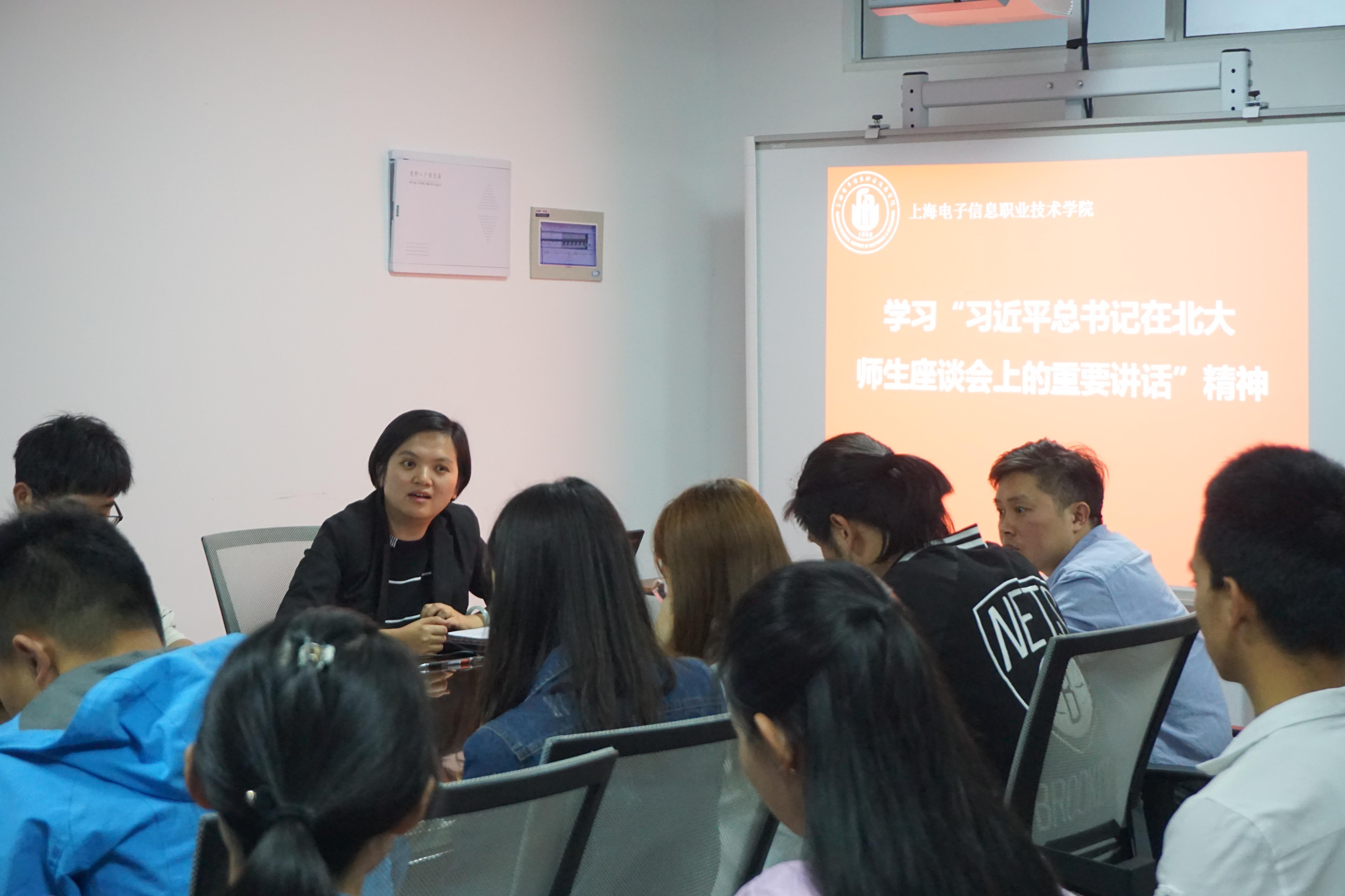 胡信煌同学(中德学院入党积极分子)谈到,习近平总书记在北京大学师生座谈会上的讲话中对当代青年的激励和鼓舞深深触动了我。作为青年一代,我们应当学会博爱、自信、勇敢、作为,培养高尚的品德情操,展现出新一代青年的全新精神面貌。作为高职院校的大学生,我们应当满载这份厚望,在大学的知识殿堂汲取成才的养分,在学习中求真学问、练真本领,携着青春这柄长剑,探问中国梦的天涯。