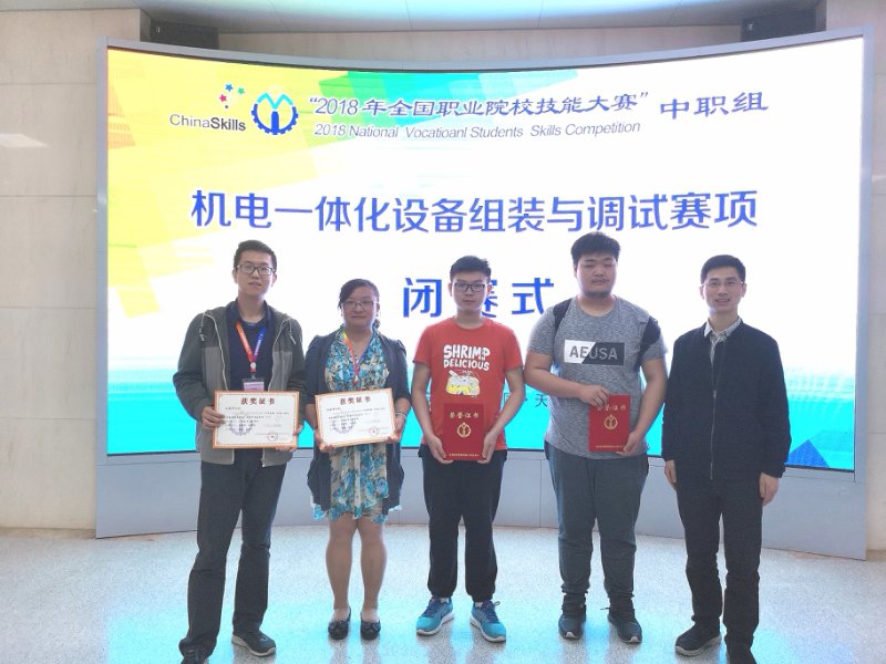 5月5日——5月7日,我校中专部机电技术应用专业15041班王煜泽同学和葛家民同学在2018年全国职业院校技能大赛中沉着应战、正常发挥,喜获中职组《机电一体化设备组装与调试》项目三等奖!