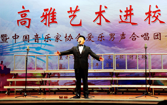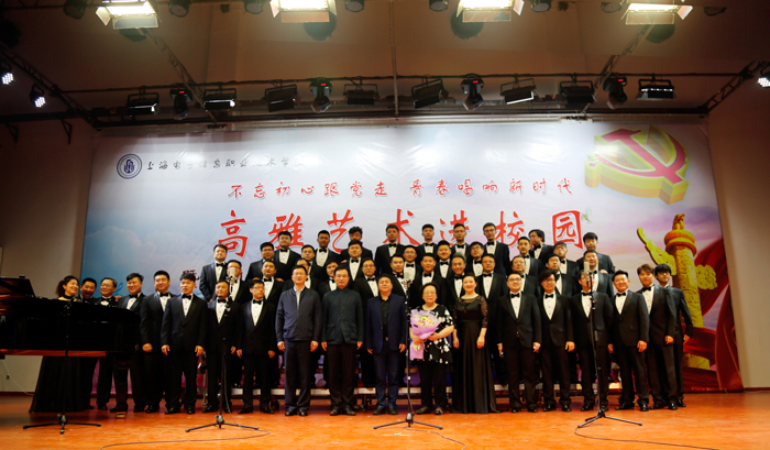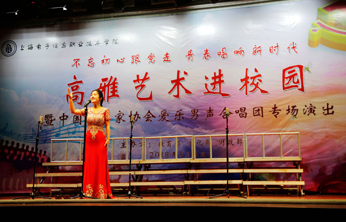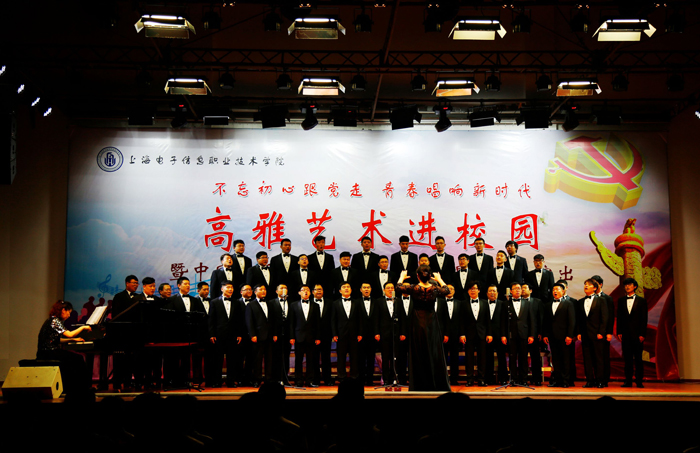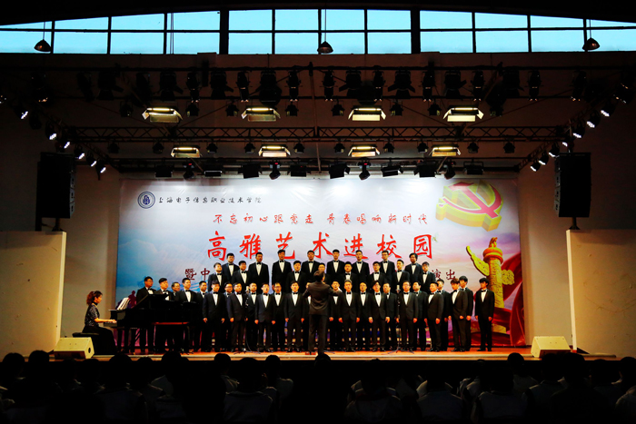 5月8日晚18时,由教育部、文化部、财政部支持的 “不忘初心跟党走,青春唱响新时代”2018年高雅艺术进校园暨中国音乐家协会爱乐男声合唱团专场演出在上海电子信息职业技术学院室内体育馆隆重举行。学校党委书记田钦、学校党委副书记、副校长顾剑锋、副校长张涛以及全校800余名师生代表观看了本次演出。