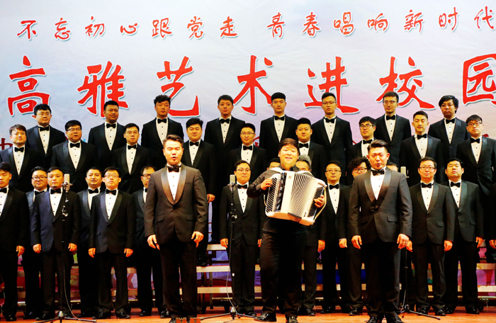 此次专场演出不仅给我校学子们带来了一场视觉上的享受,更加近距离的让学子们感受到了高雅艺术音乐与现代流行音乐这二者结合的魅力,为合唱艺术的新形式在青年中的推广起到了巨大的作用。整场音乐会在合唱《大江东去》、《美丽的夏牧场》、《忆秦娥•娄山关》中拉开帷幕。此次演出不仅有男声合唱,还有特色的男高音独唱、男声无伴奏小组唱、男声小合唱和女高音独唱,这些丰富多样的演出形式赢得了在场师生一轮又一轮的掌声。空灵婉转的歌声将同学们代入一个又一个美好的世界,让我们走进那一段又一段美妙音乐背后的故事,整场音乐会在男声合唱《卡林卡》饱含激情与力量的演绎下完美收场,直指人心、余音绕梁。乐声渐渐消失,内心的悸动却从未消退,用灵魂演绎音乐,给我们带来的远不止一场欢愉,更是一场生命的洗礼。