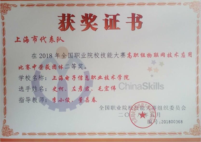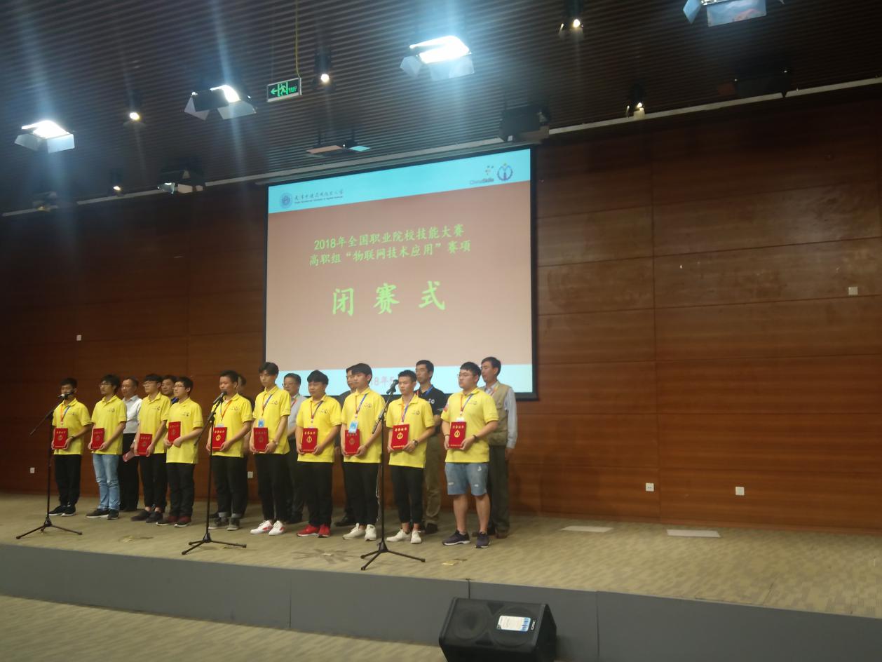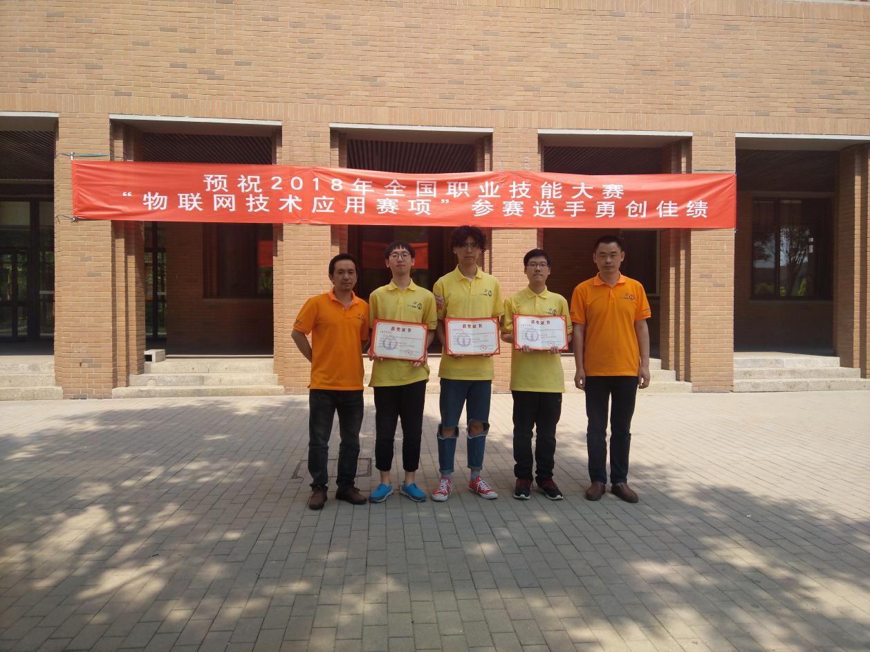 2018年5月8日,在全国职业院校技能大赛天津赛区举行的比赛中,来自全国各省、直辖市乃至其他少数国家的共102支国内外代表队经过四小时激烈角逐,由我校通信与信息工程学院学生史柯、左彦君、毛宏伟,指导教师李小俊、董昌春组成的代表队在全国职业院校技能大赛高职组“物联网技术应用”赛项比赛中荣获团体二等奖。