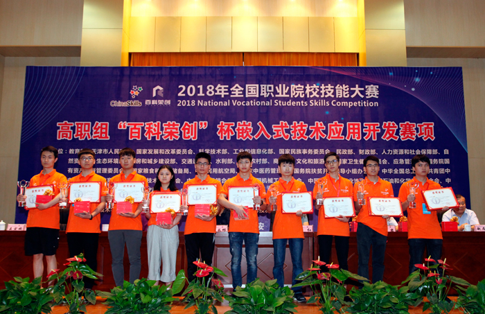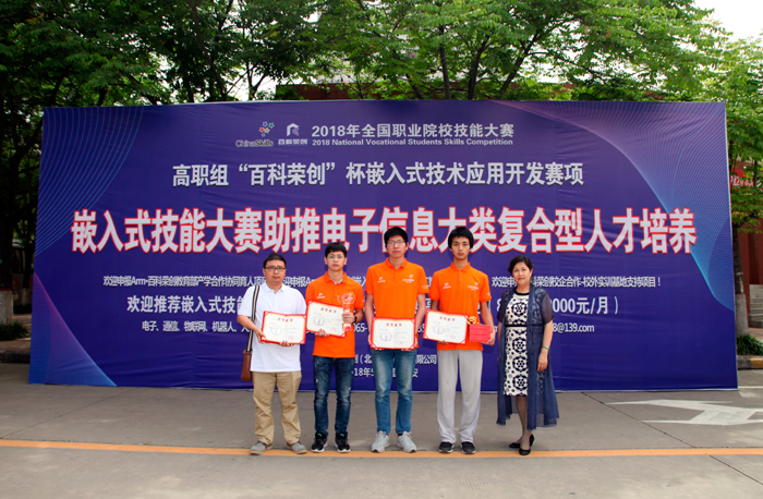 5月28日,2018全国职业院校技能大赛高职组“嵌入式技术应用开发”赛项在西安航空职业技术学院圆满闭幕,我校由电子技术与工程学院学生税进、王慰、赵铭皓和指导教师杨莹、沈毓骏组成的参赛队,以扎实的专业技能、顽强的拼搏精神、良好的心理素质,从全国95支参赛队中脱颖而出,勇夺全国一等奖。学校党委副书记、校长杨秀英专程赶赴西安赛区看望慰问参赛师生,见证参赛团队奋勇夺冠、为我校、为上海市争得荣光的精彩历程。
