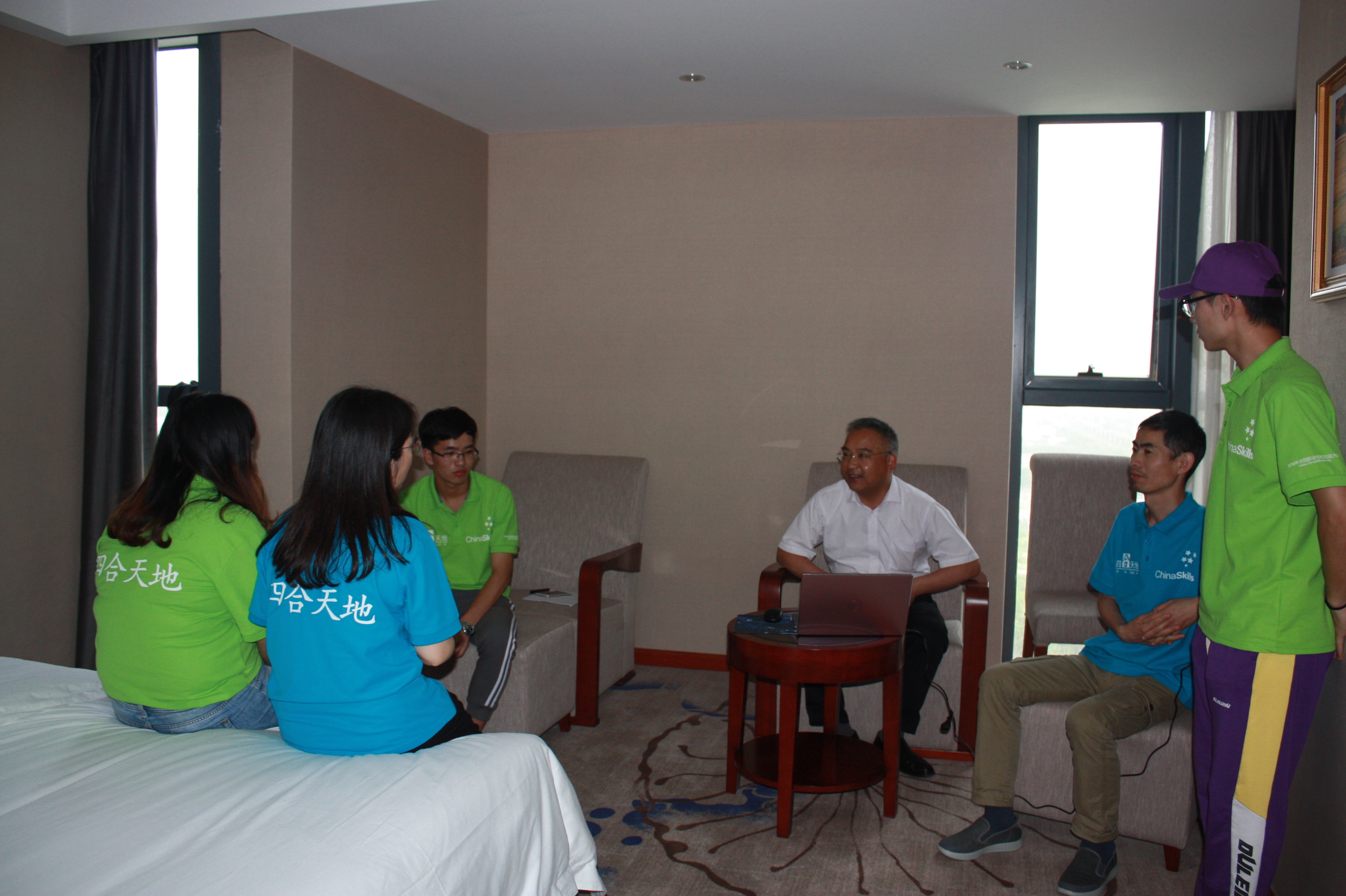 2018年5月29日晚,徐德明副校长赶到河南省许昌市,来到参赛团队入住酒店后,与参加全国职业技能大赛“软件测试”赛项高职组比赛的师生进行了亲切交谈。徐副校长了解了参赛选手的训练和准备情况,对指导教师和参训选手的辛勤付出给予充分的肯定,鼓励参赛选手要注意休息、调整心态,以自信、自强的精神风貌,稳定发挥、争取比出好成绩。2018年5月30日早上6点半,徐副校长同参赛师生一道前往全国职业技能大赛比赛现场,再次为他们加油助威,希望他们放松心态,沉着应战,赛出成绩,赛出水平。