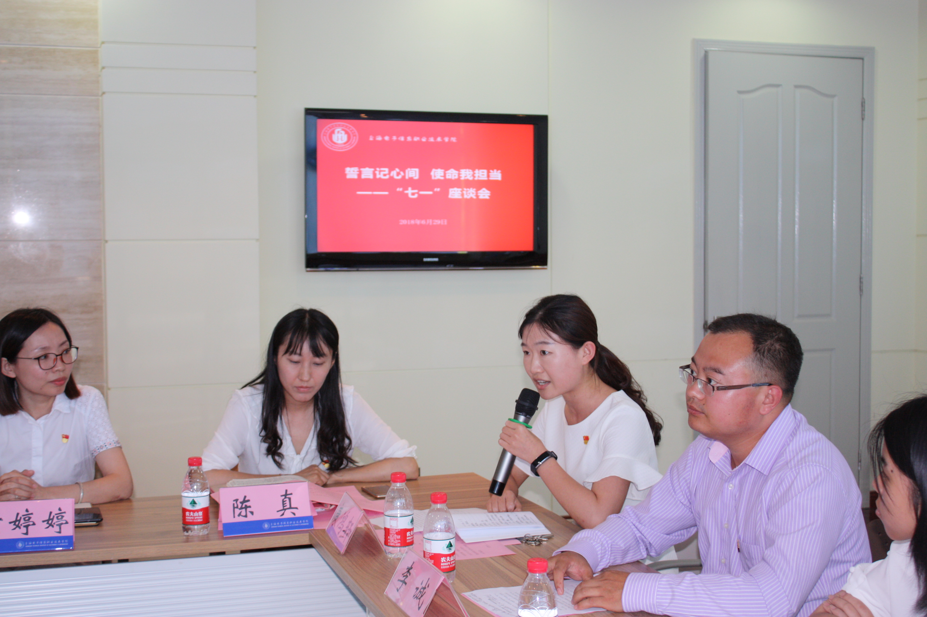 党委副书记、校长杨秀英主持本次座谈会指出,本次座谈会邀请了各年代党员代表聚集在一起,机会难得。希望大家畅所欲言,结合各自经历回顾中国共产党发展97年历程的所思、所感、所悟,并谈谈如何通过自身岗位担当使命,践行誓言,始终在党爱党、在党为党,忠诚一辈子、奉献一辈子,以实际行动做一名合格党员。